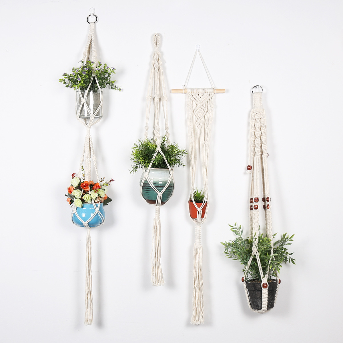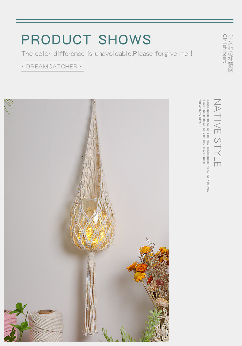 a variety of green plant hanging basket net pocket hanging bag flower pocket diy material package hand-woven tapestry bohemian home wall