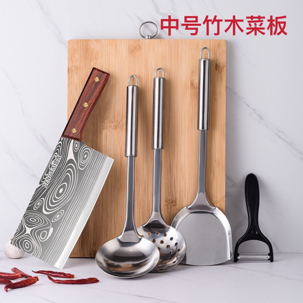 | large bamboo cutting board + knife + spoon + spatula | ¥57.89 | 999999 piece available |