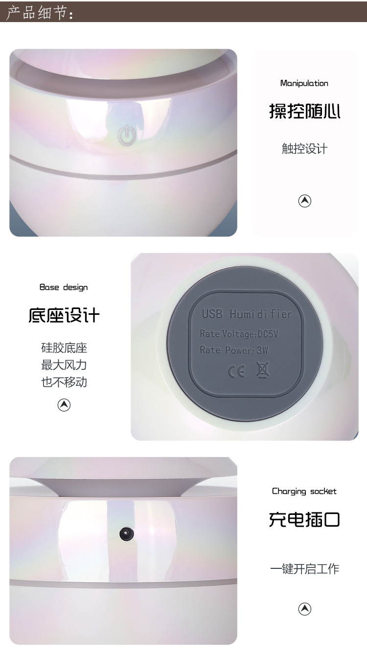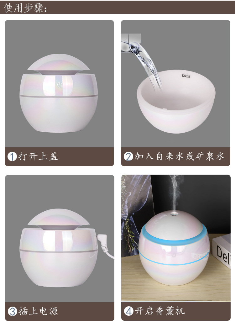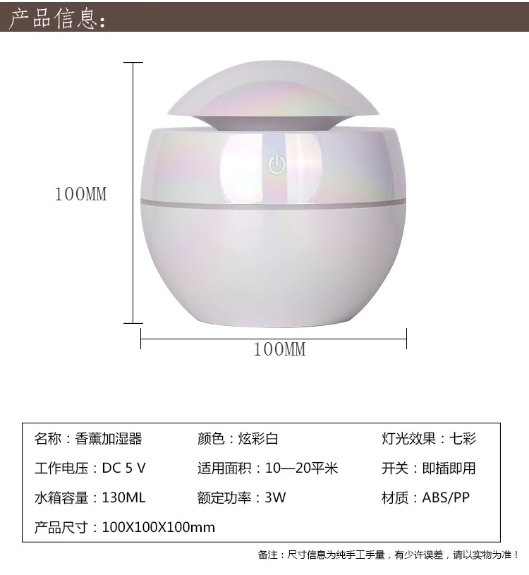 Function: Color-changing ambiance light, humidifier, night light