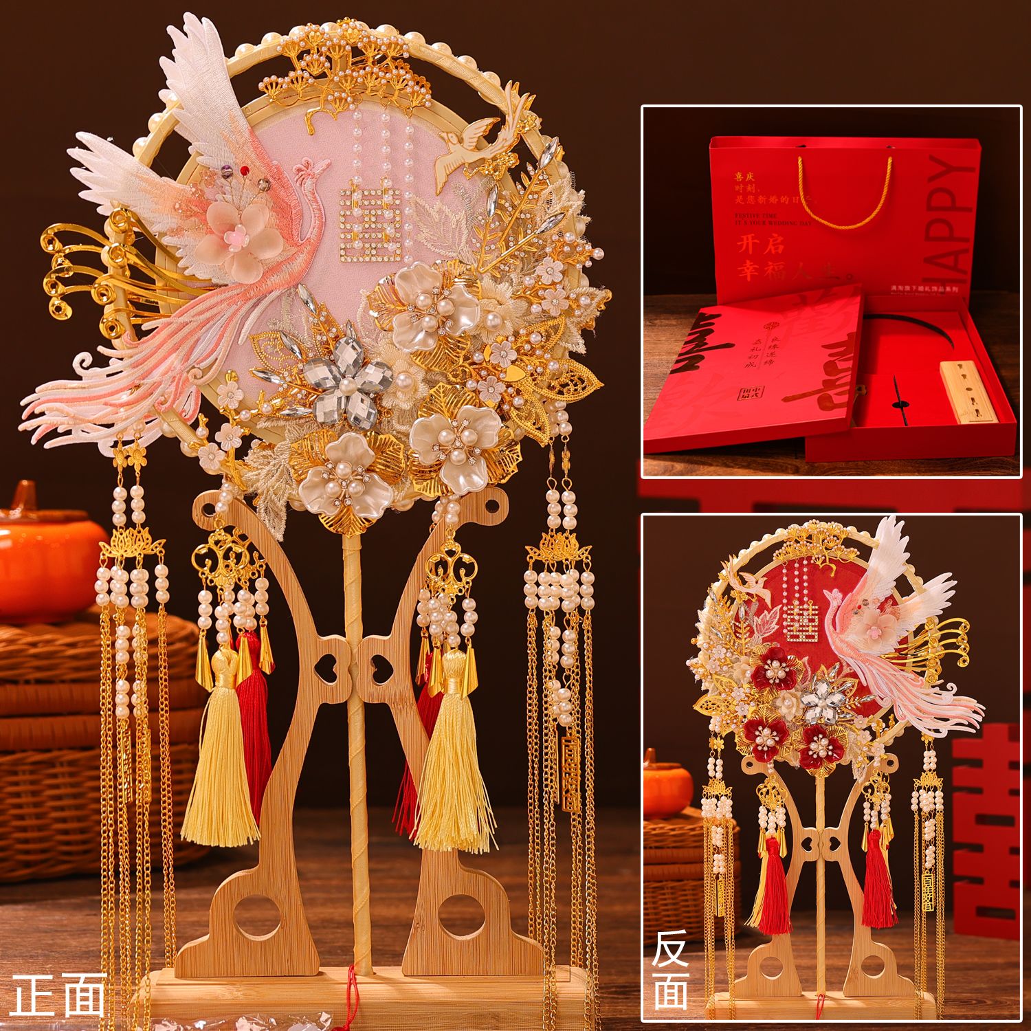 | wedding fan + bamboo fan frame + embedded gift box | ¥138.46 | 999999 piece available |