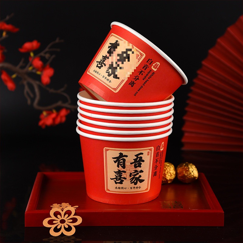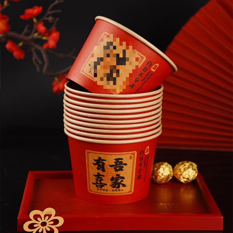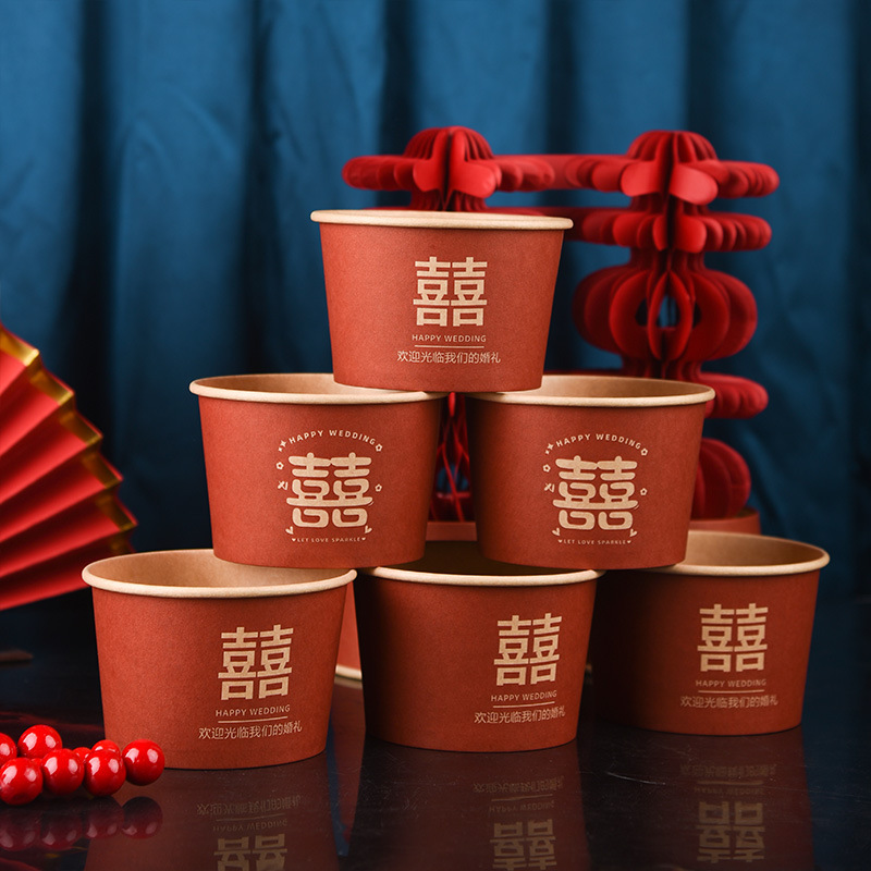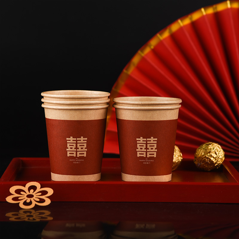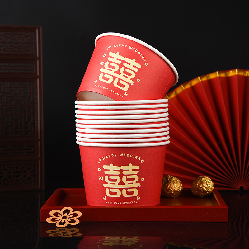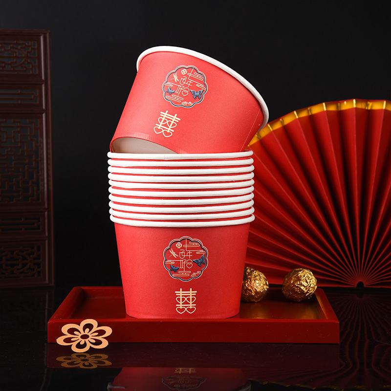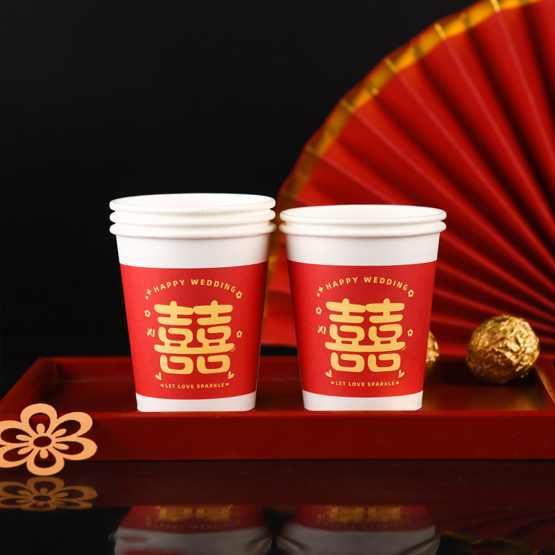 100 pcs new chinese-style happy extra thick paper cups 245 ml