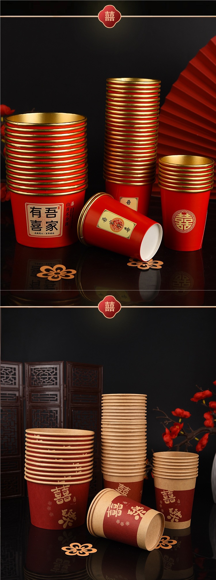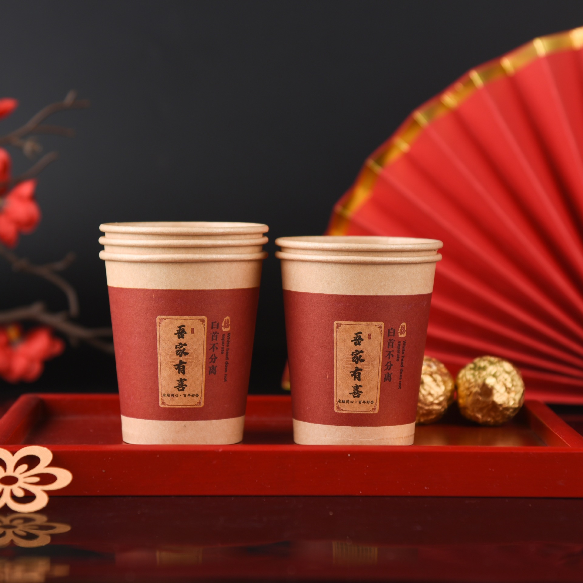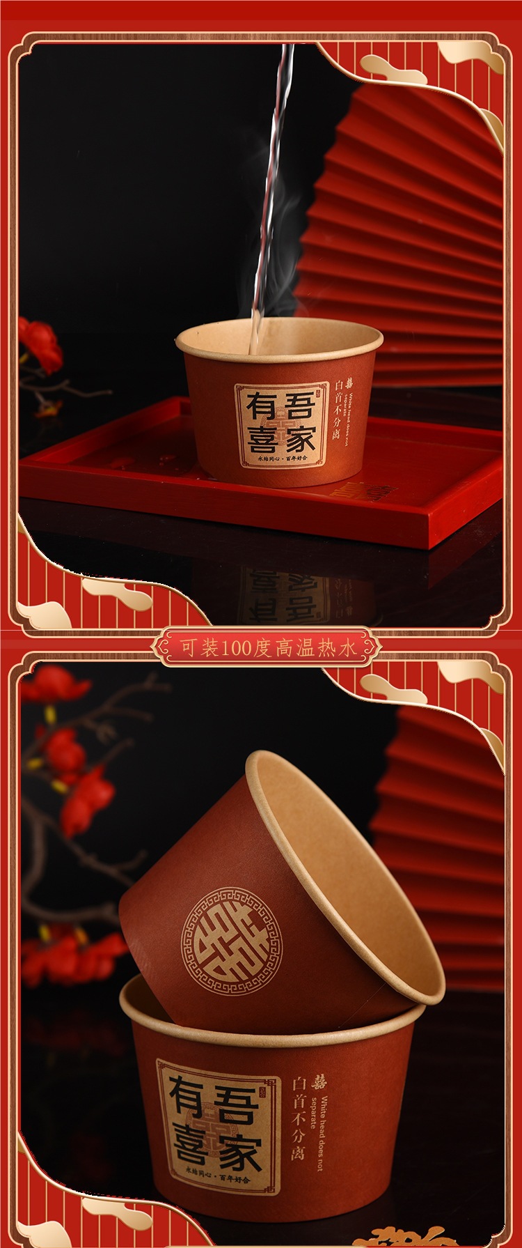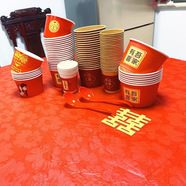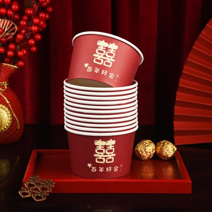 100 pcs new chinese-style happy extra thick paper cups 245 ml