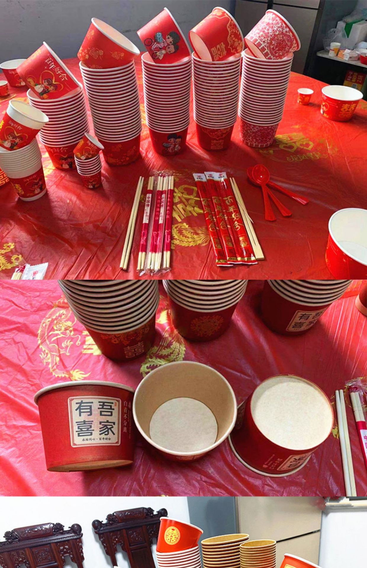 100 people set six (bowl cup chopsticks each 100) +10 tablecloth (extra thick 500 ml)