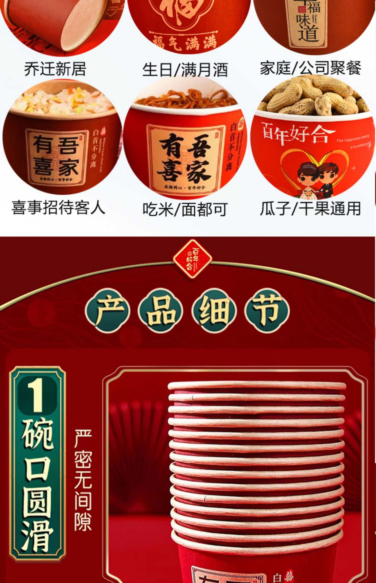 50 pcs hot sale [xi word bowl] extra thick 500 ml