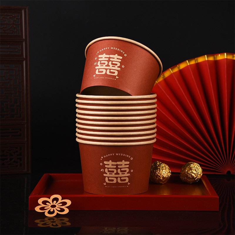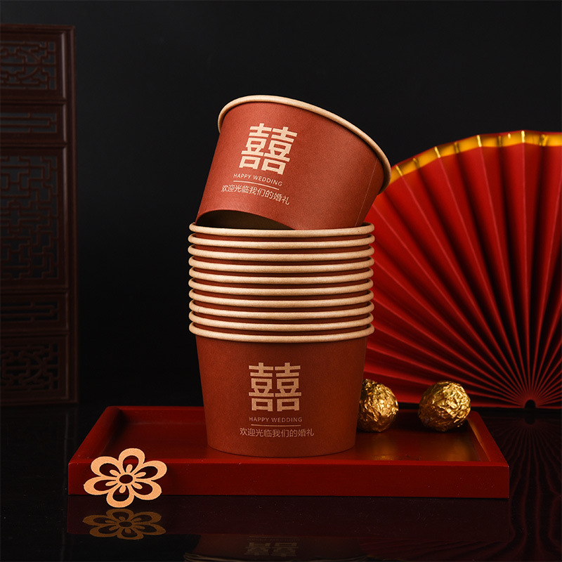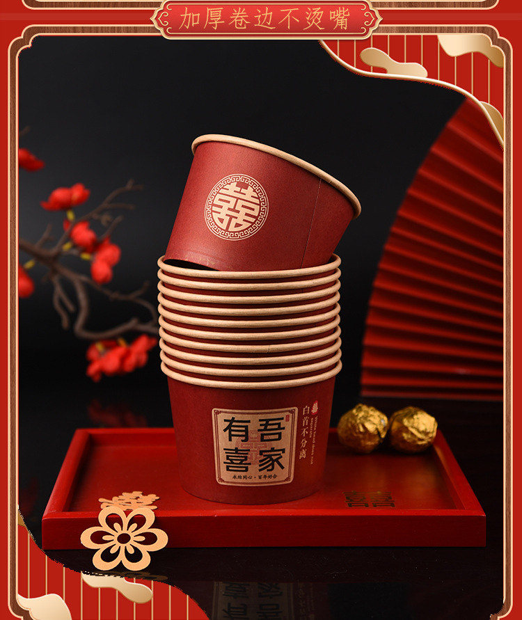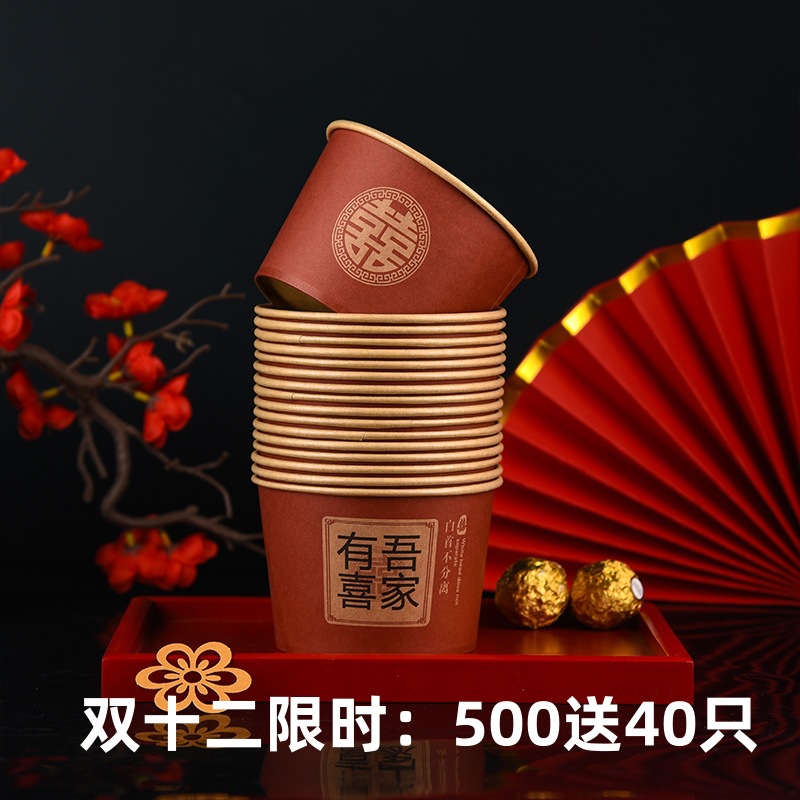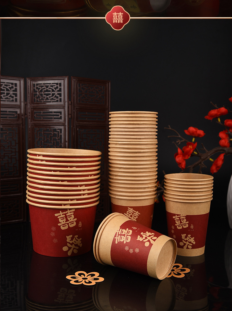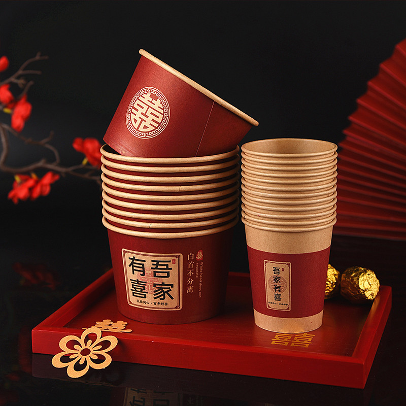 100 pcs new chinese-style happy extra thick paper cups 245 ml