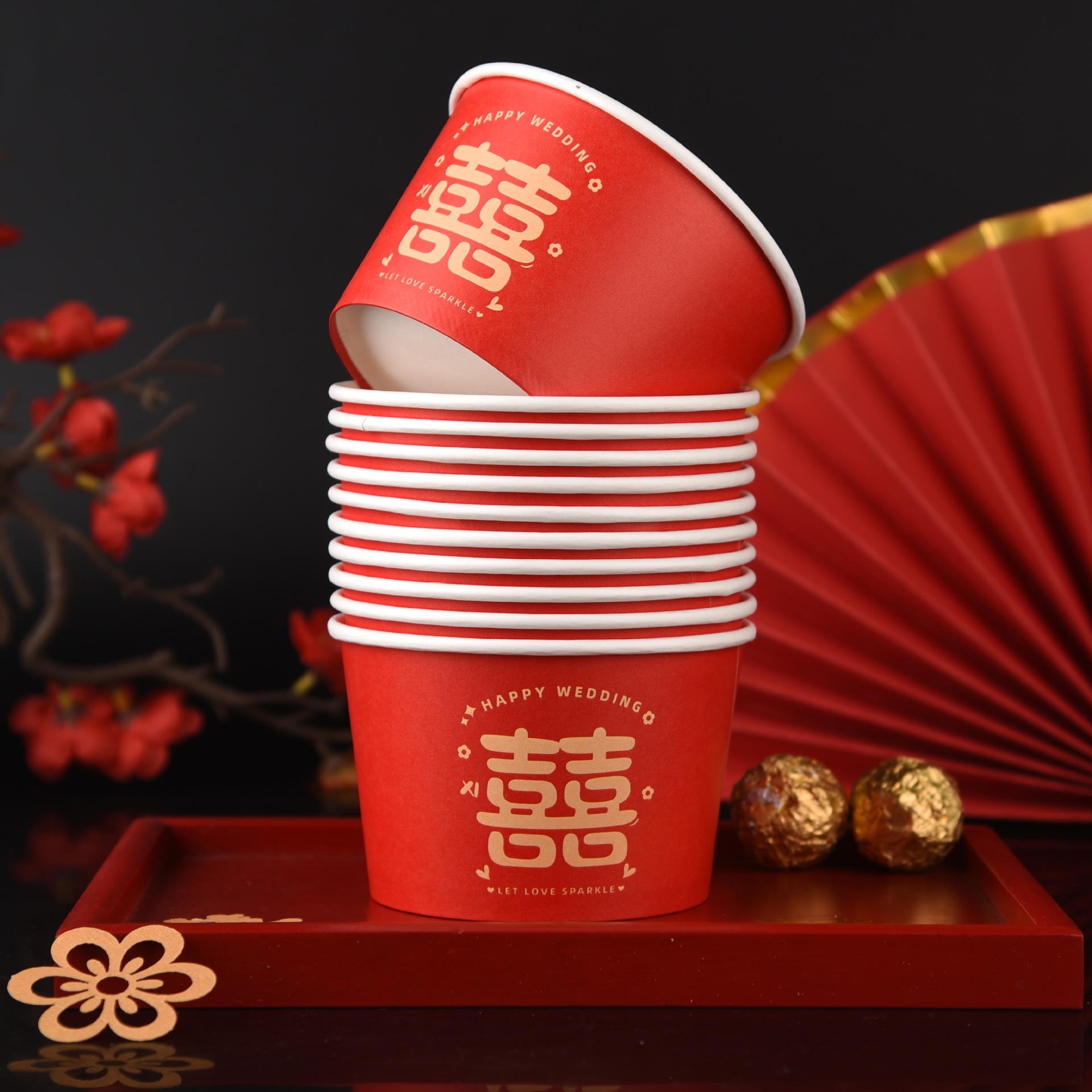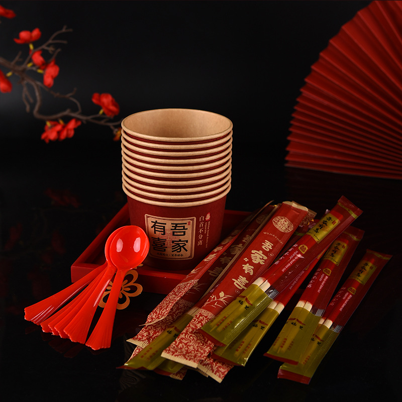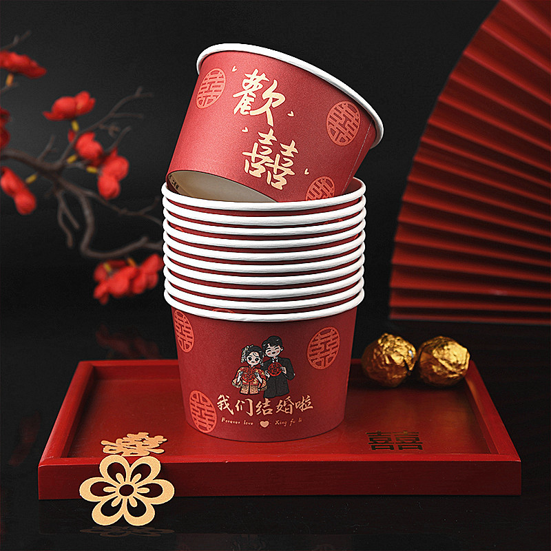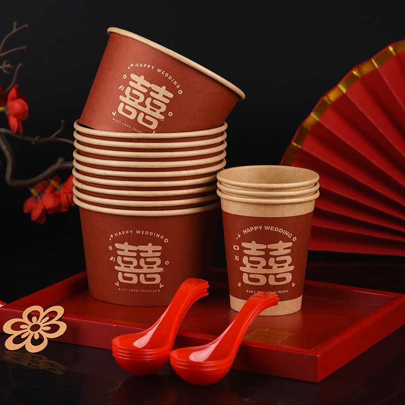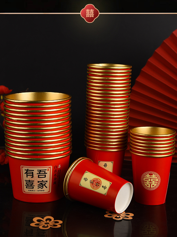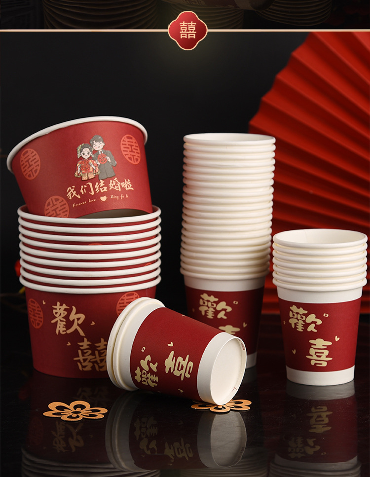 100 pcs new chinese-style happy extra thick paper cups 245 ml