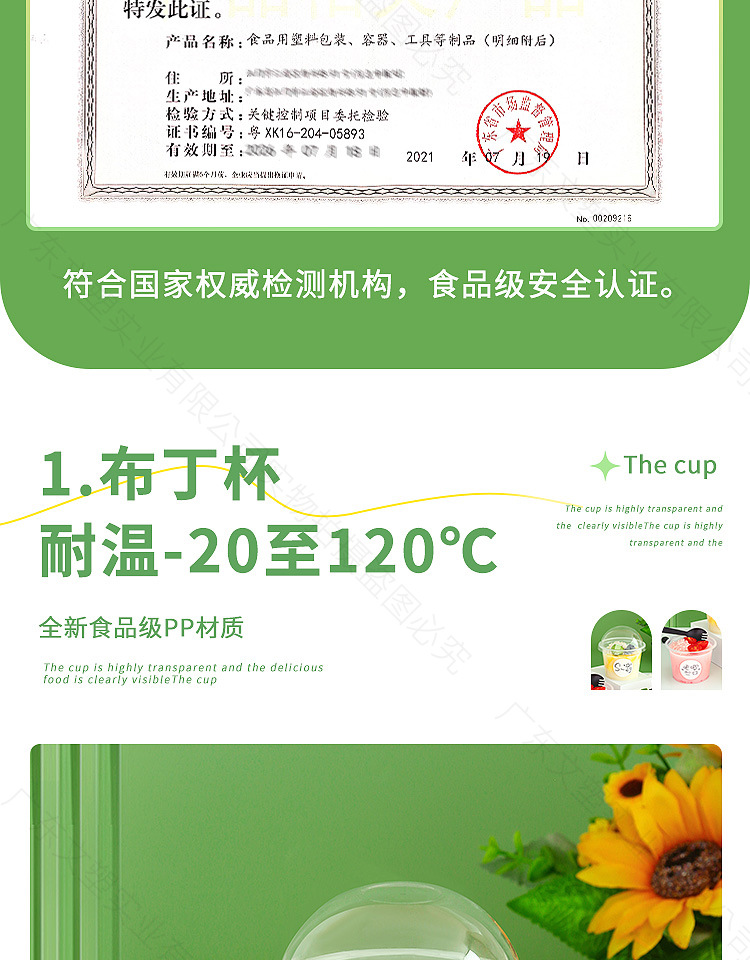 250ml flat bottom pudding cup 500; straight drink cap
