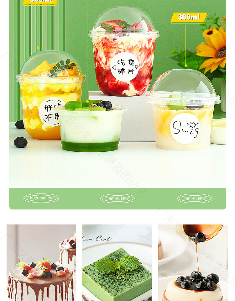 300ml flat bottom pudding cup 500; straight drink cap