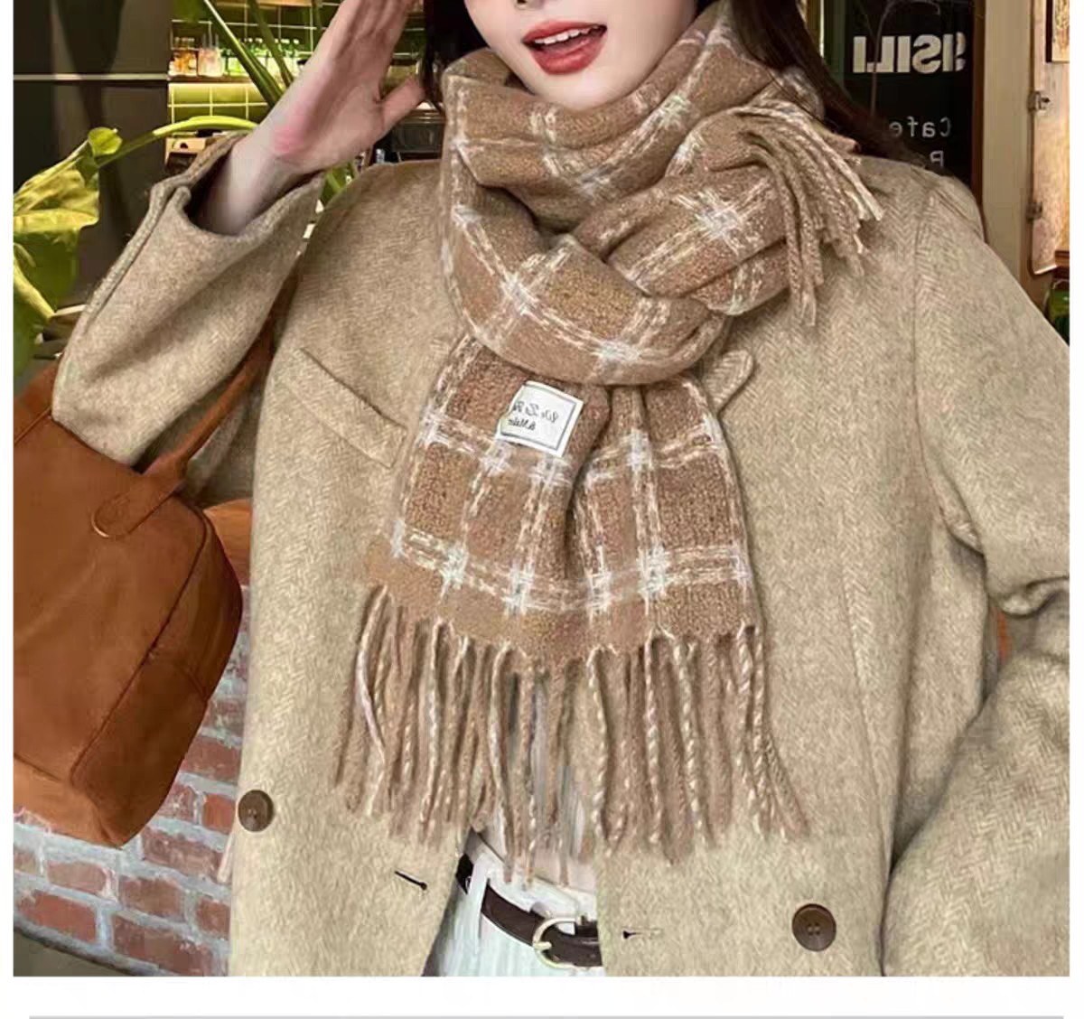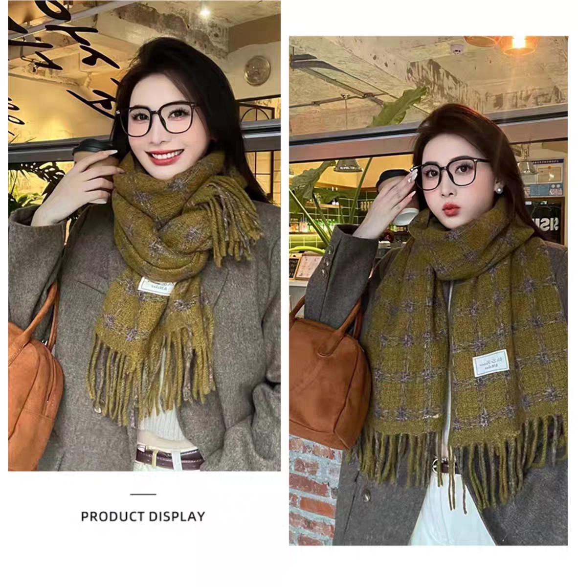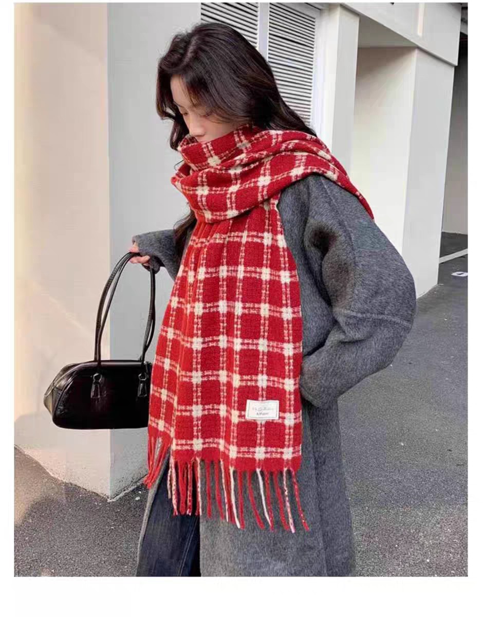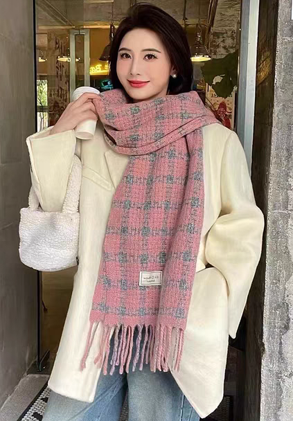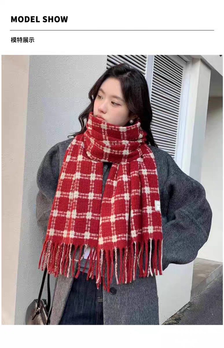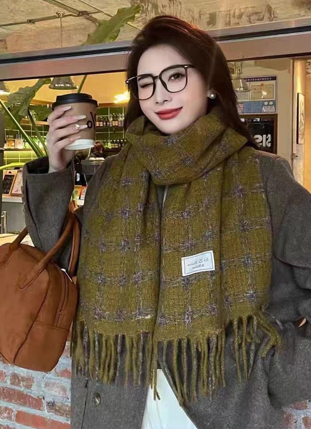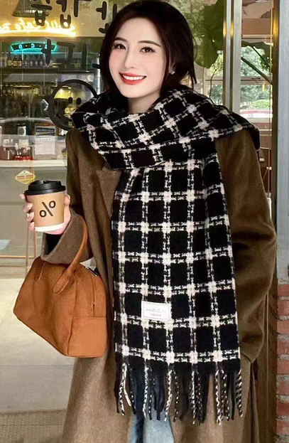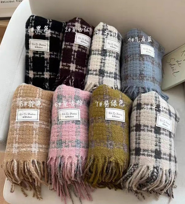 New model, in stock, retro lattice pattern, material: mohair loop yarn knitted, size: 65*180, weight: 288 grams, item number: 39120280