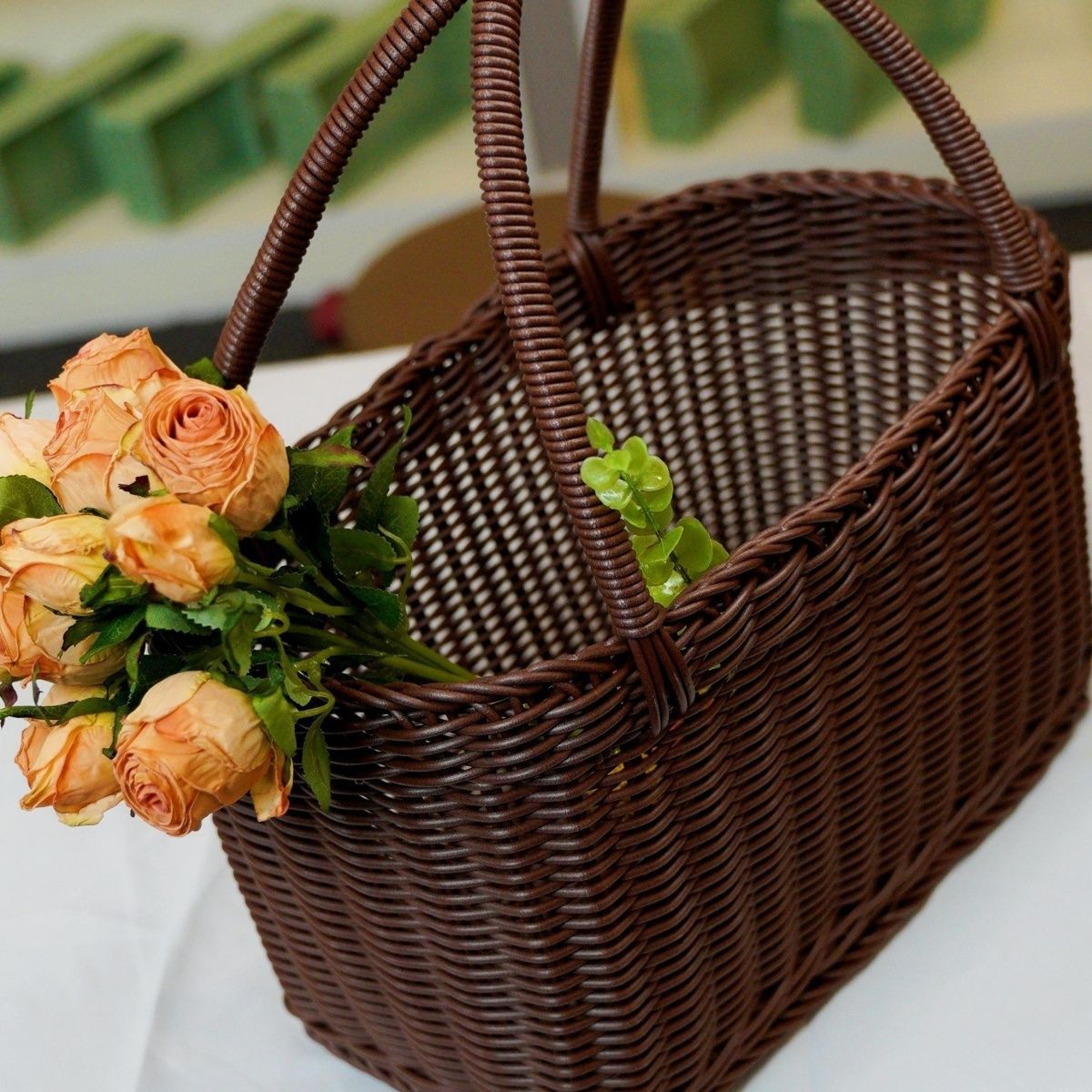 brown rectangular basket small size length 36-width 20-height 21cm