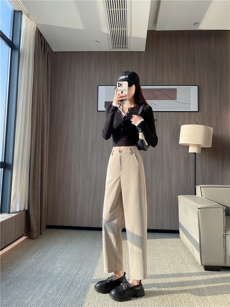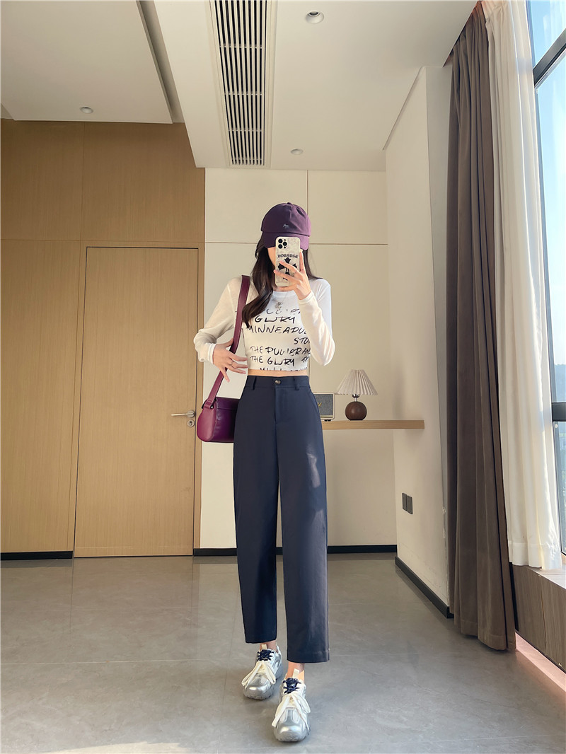 The nine-point scythe balloon pants shape, combined with three-dimensional cutting silhouette and high-waist design.