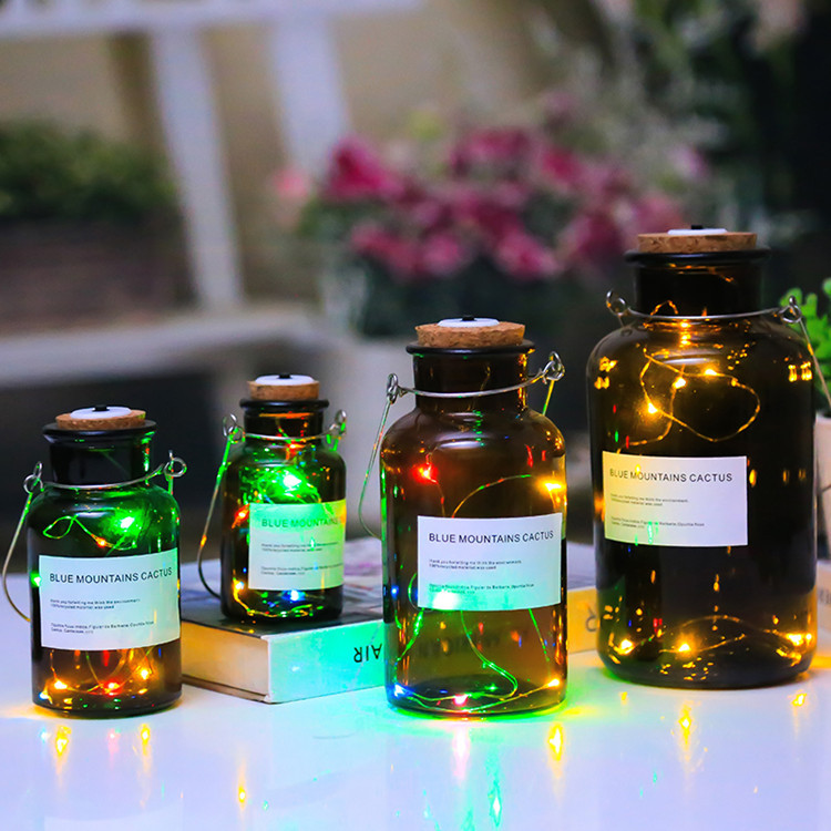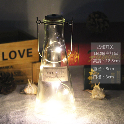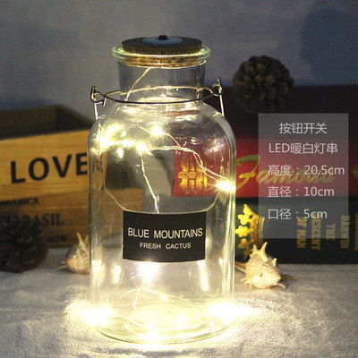 extra large wide mouth + warm white lighting chain; transparent
