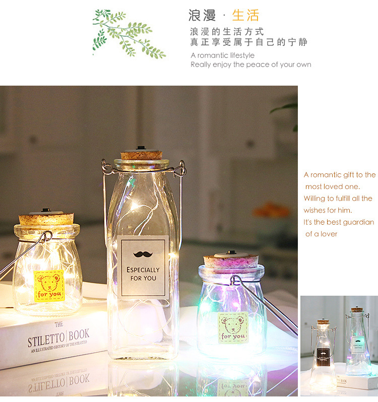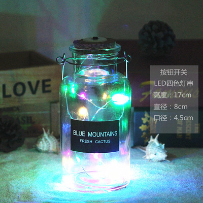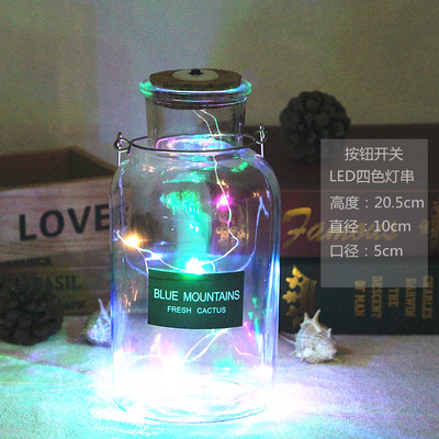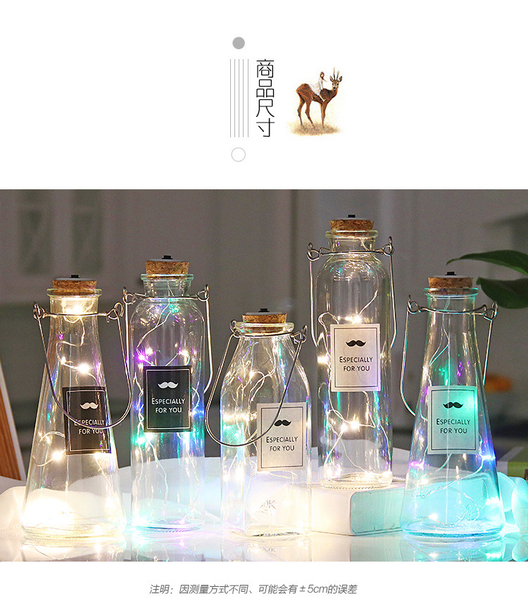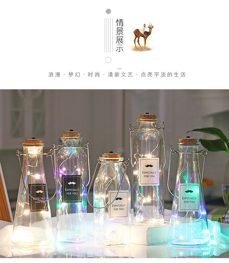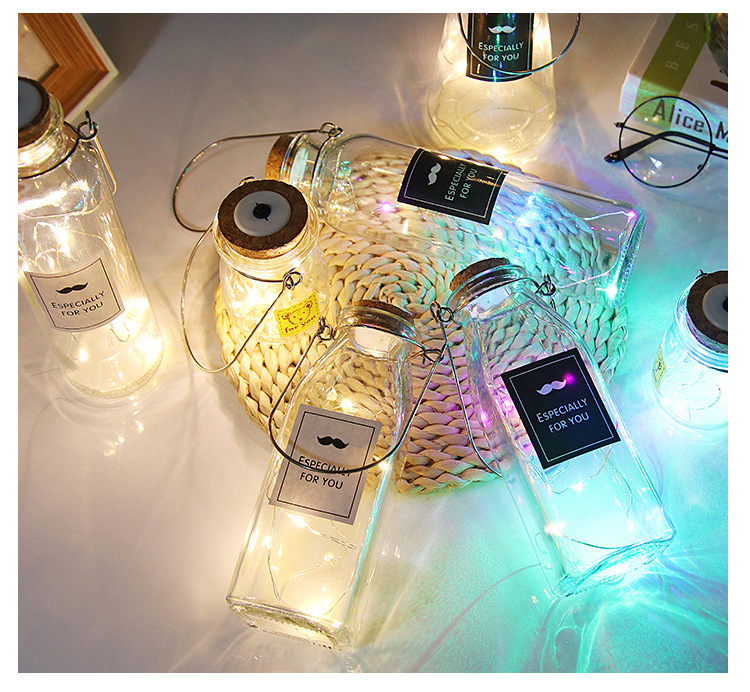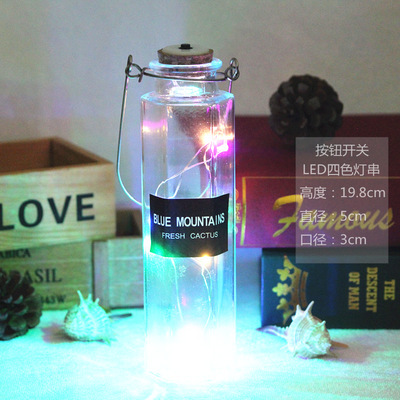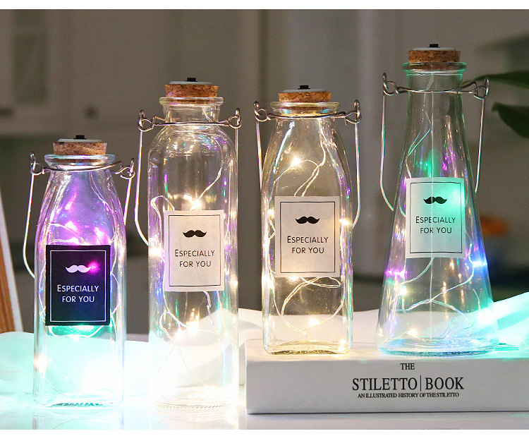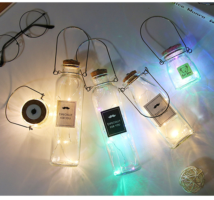 cylinder bottle + color lighting chain; transparent