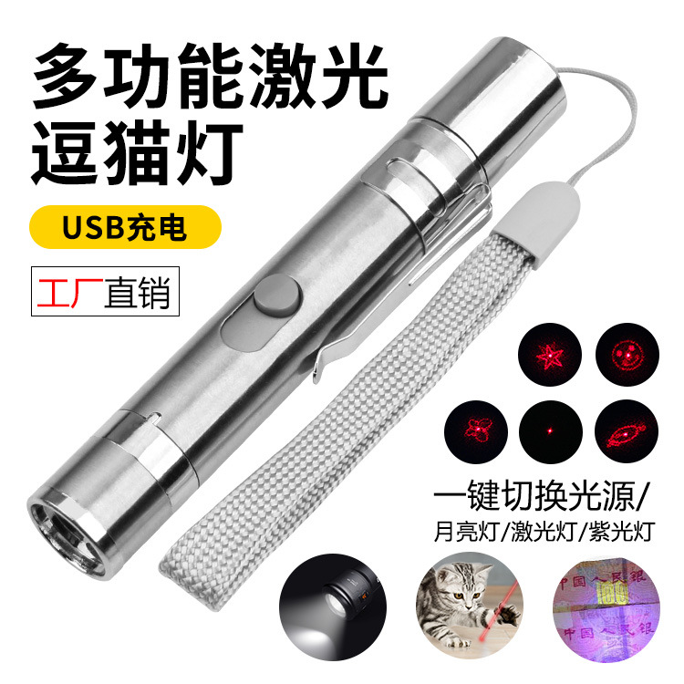cross-border in stock usb charging multifunctional infrared multi-pattern laser interactive relieving stuffy laser teaser
