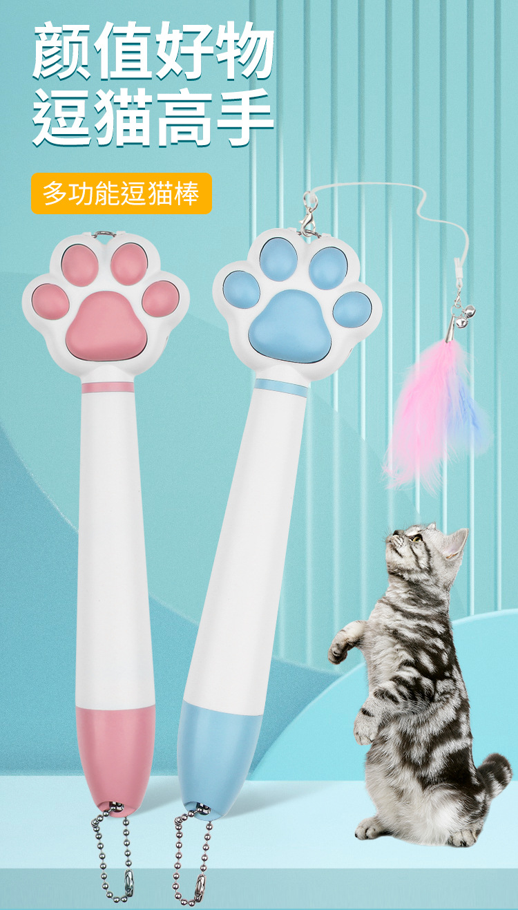 laser toy cross-border charging cat's paw handheld infrared elastic string bell feather telescopic rod teaser