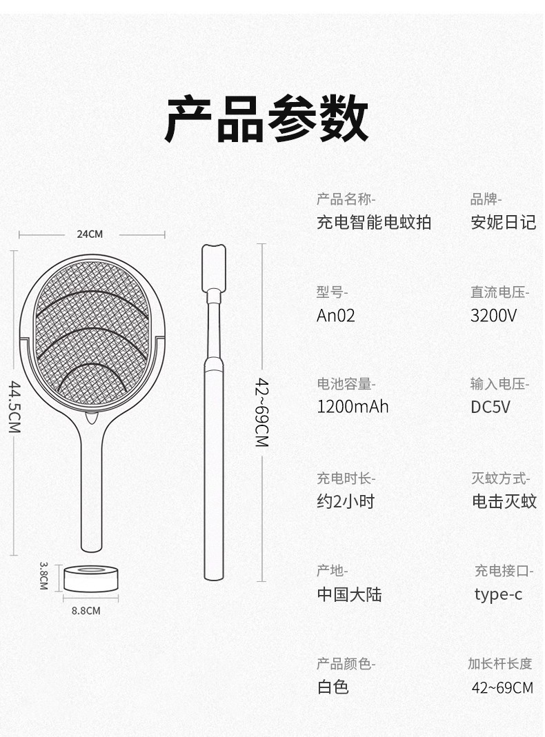 six-in-one white-wall hanging with base lengthening bar [90-degree rotation + handheld + mosquito-lured lamp]]