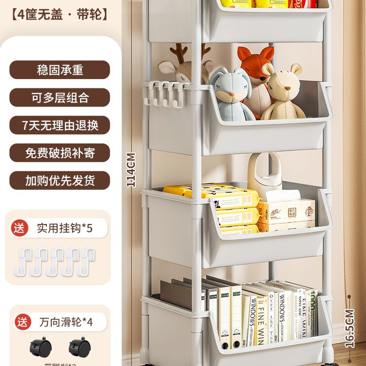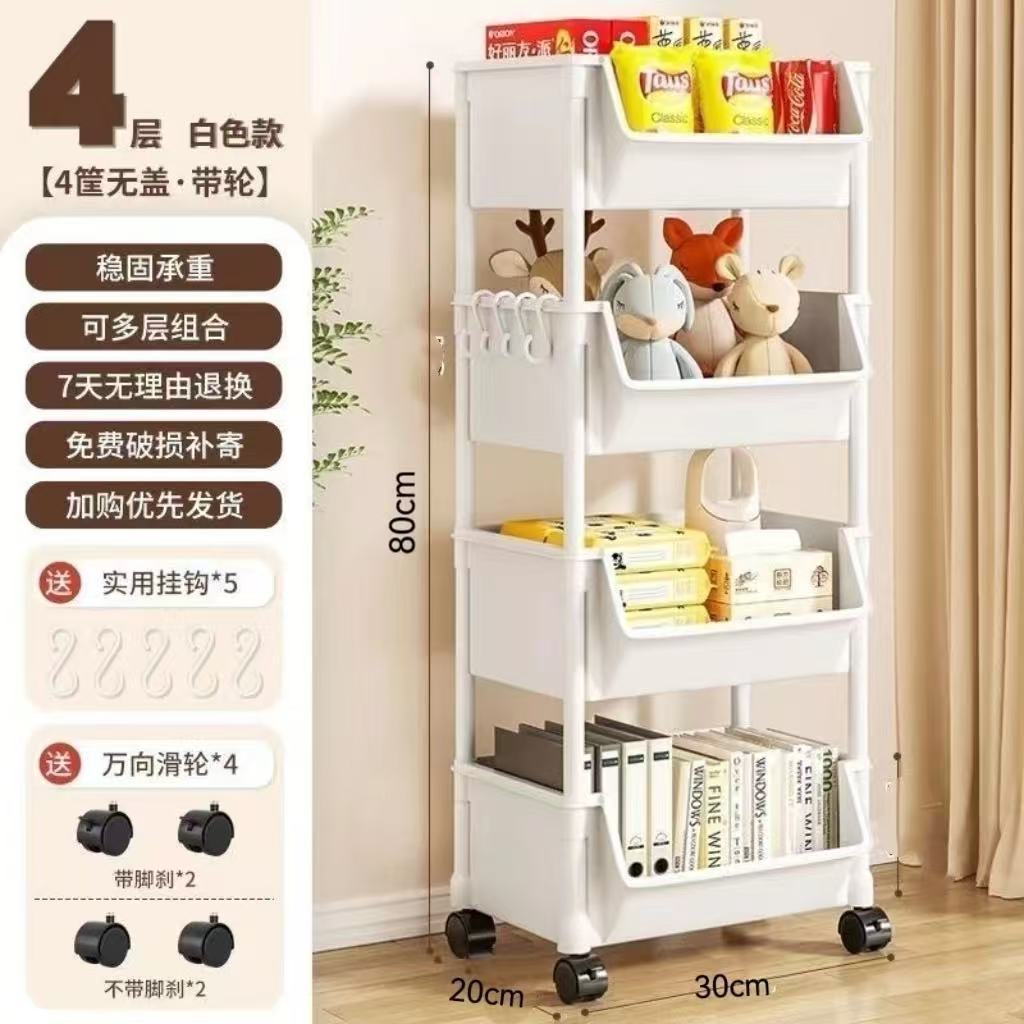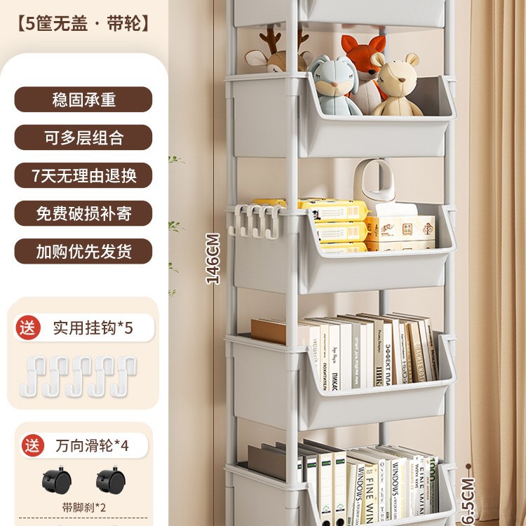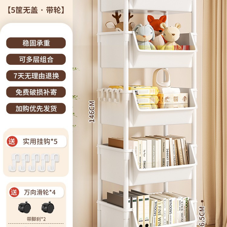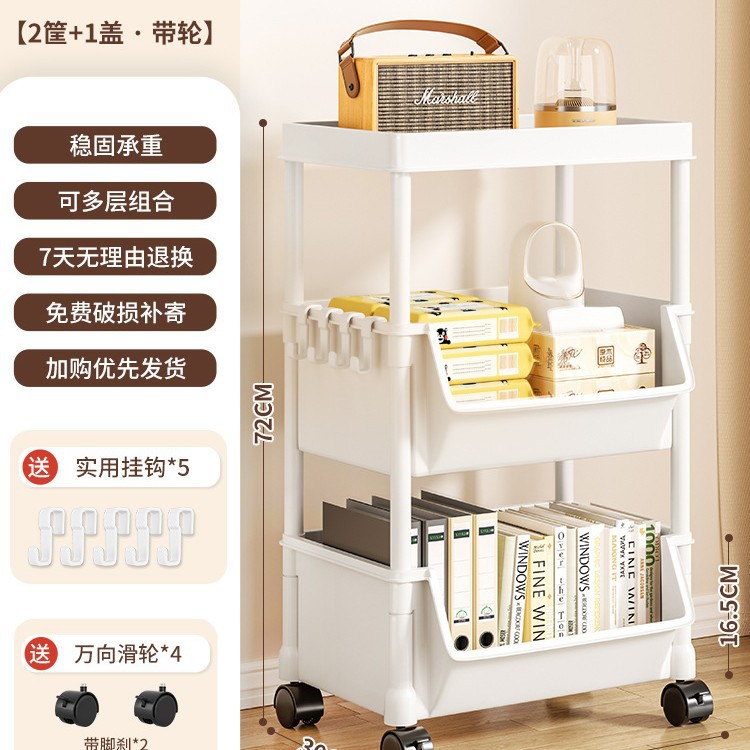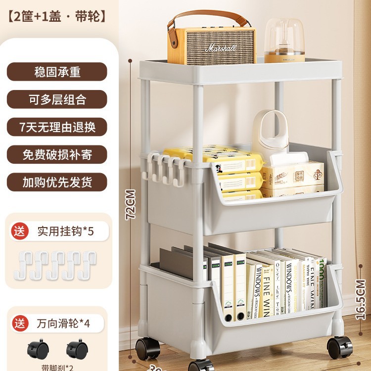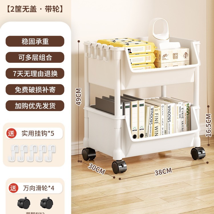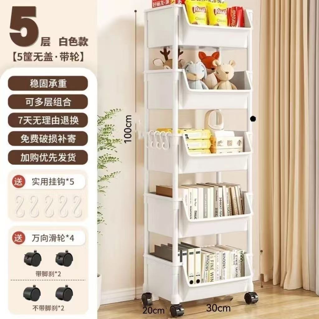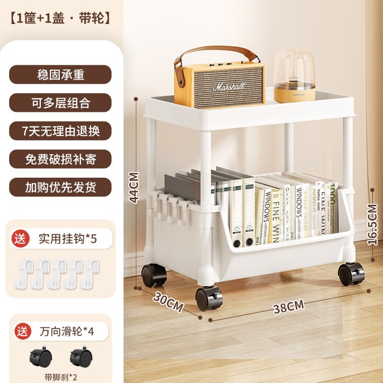 Table-side mobile student bookcase with multiple layers, foldable, with wheels, home storage rack, organizing storage rack