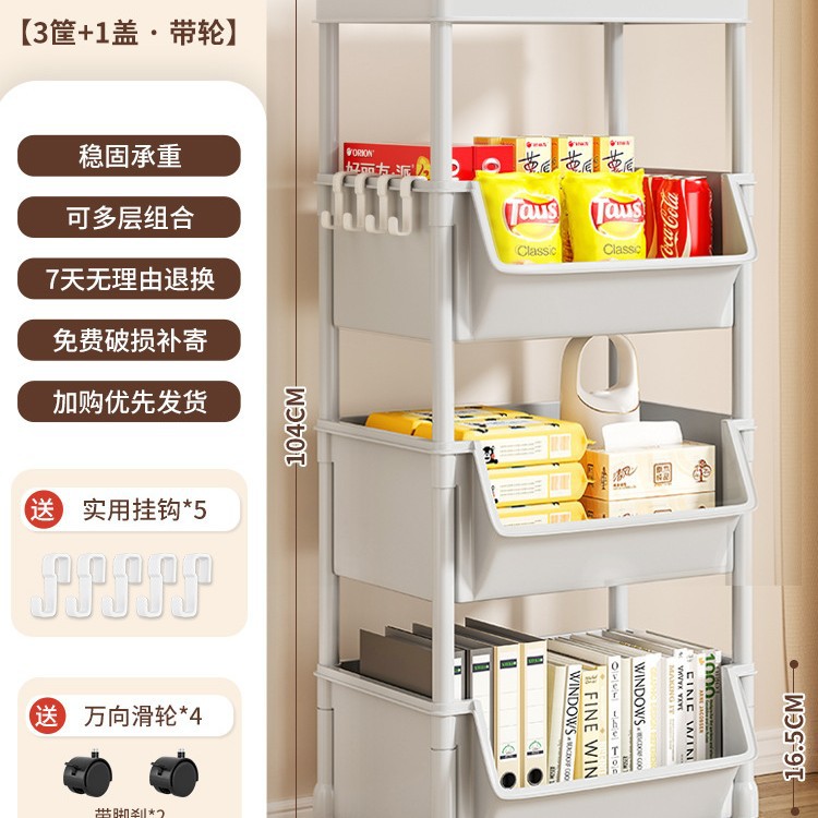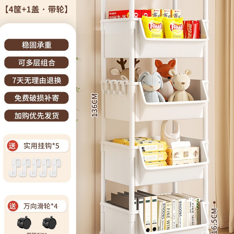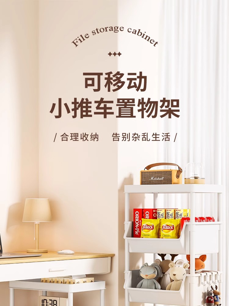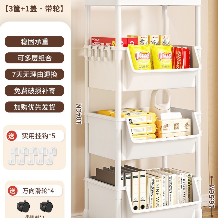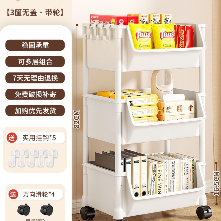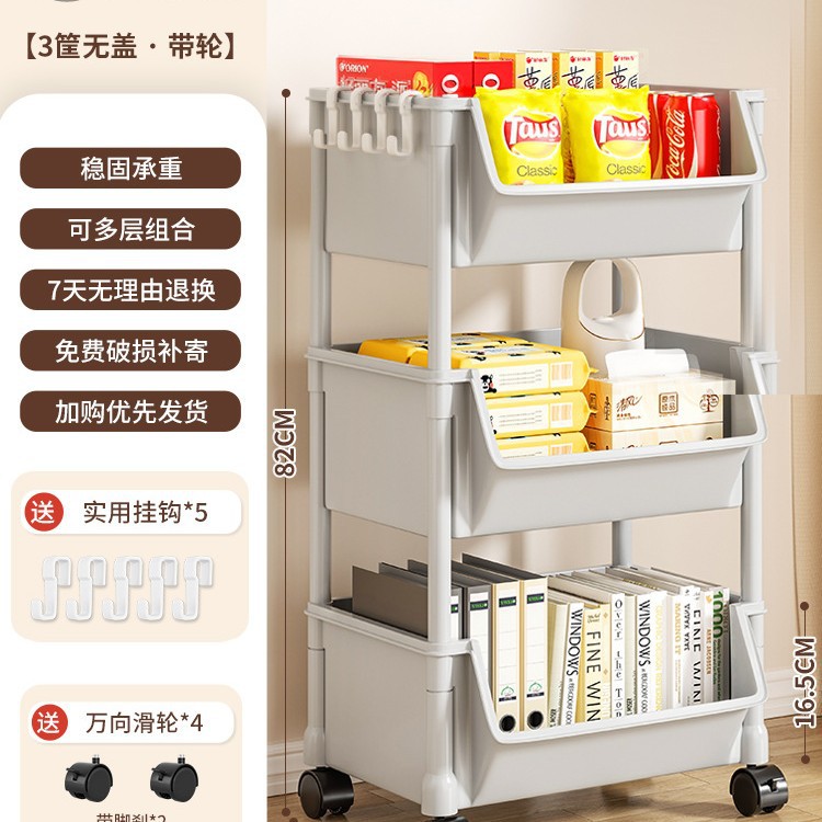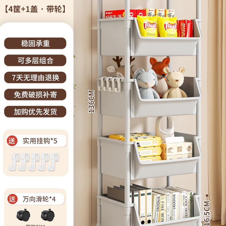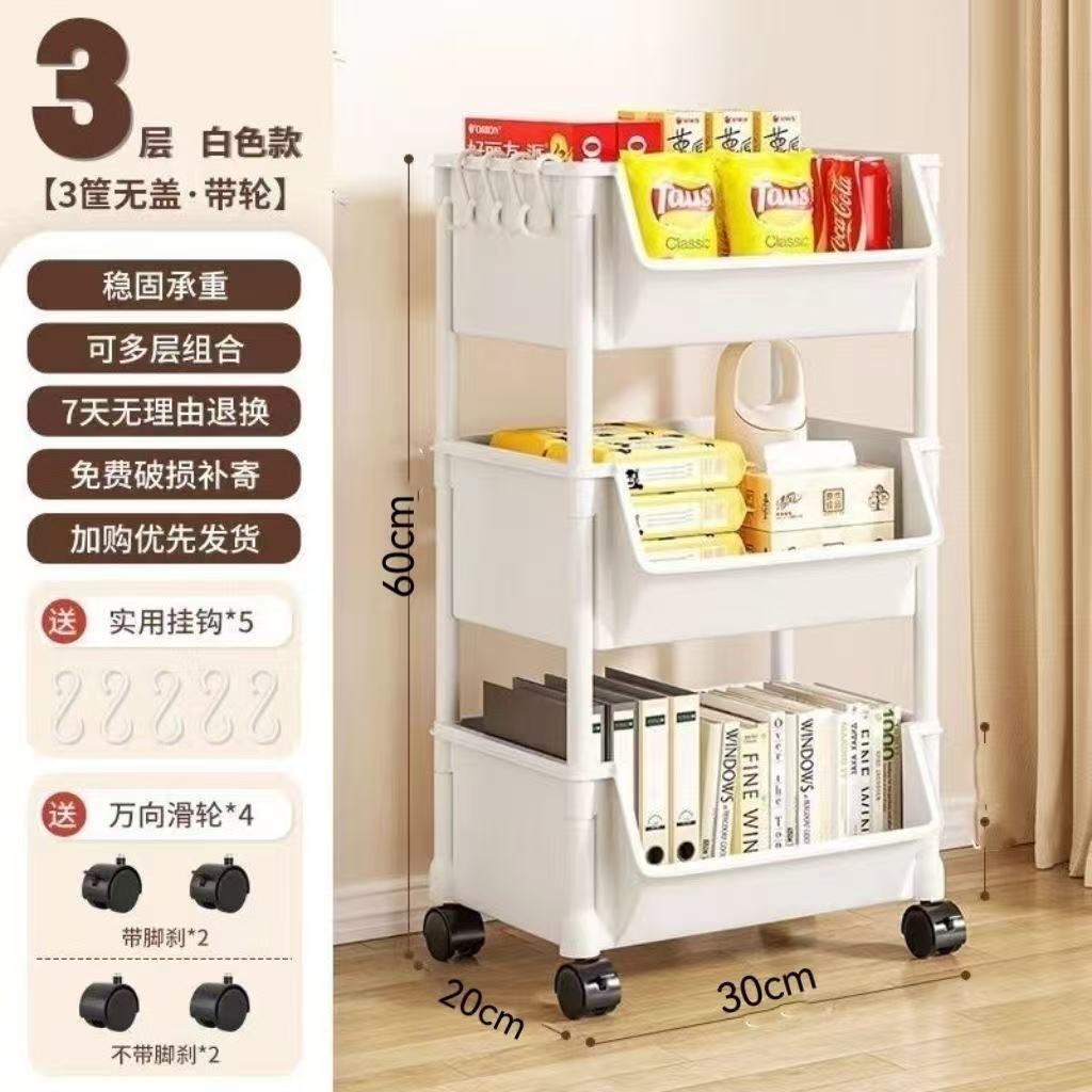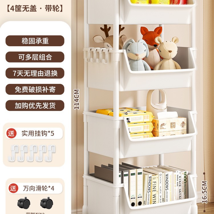 Table-side mobile student bookcase with multiple layers, foldable, with wheels, home storage rack, organizing storage rack