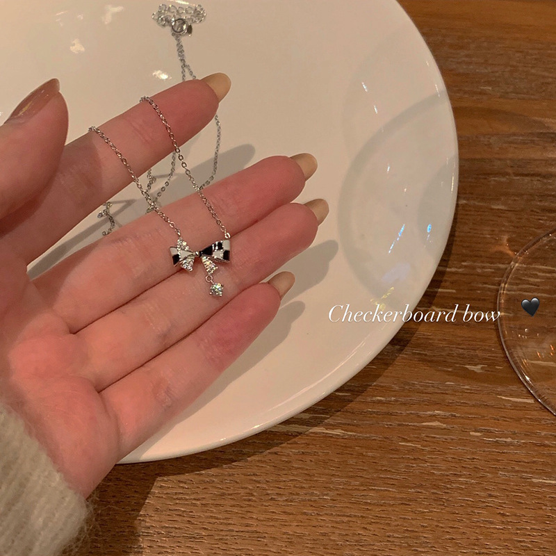 checkerboard bow necklace