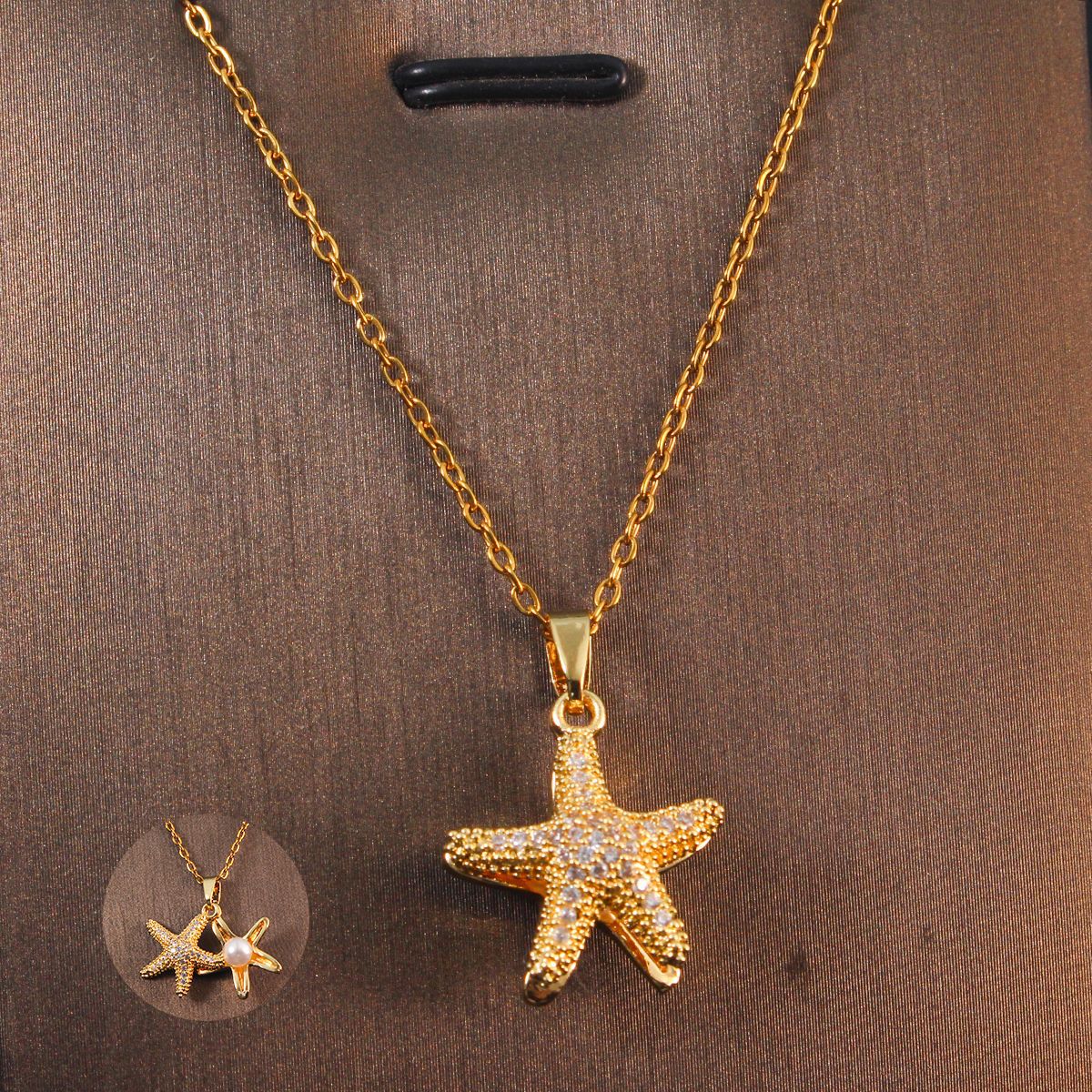 xl795 pearl starfish necklace gold