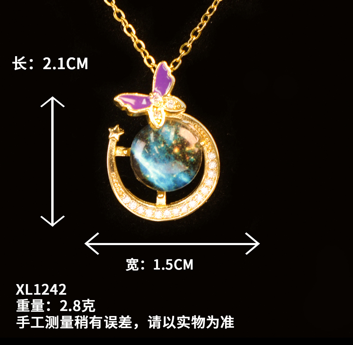 xl1154 butterfly moon planet necklace gold