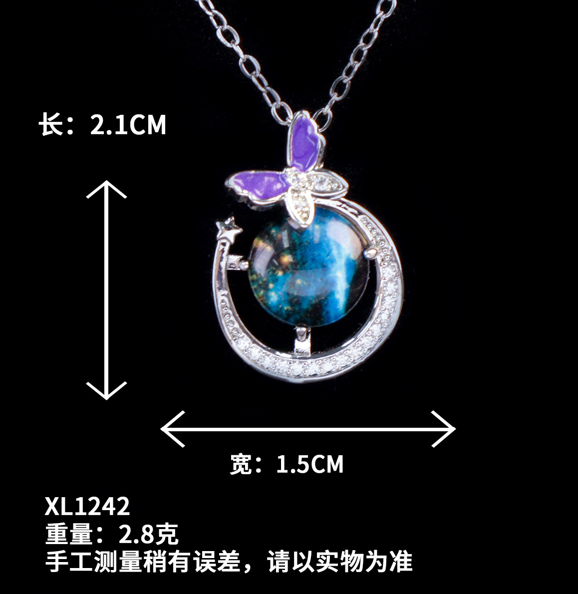 xl1154 butterfly moon planet necklace silver