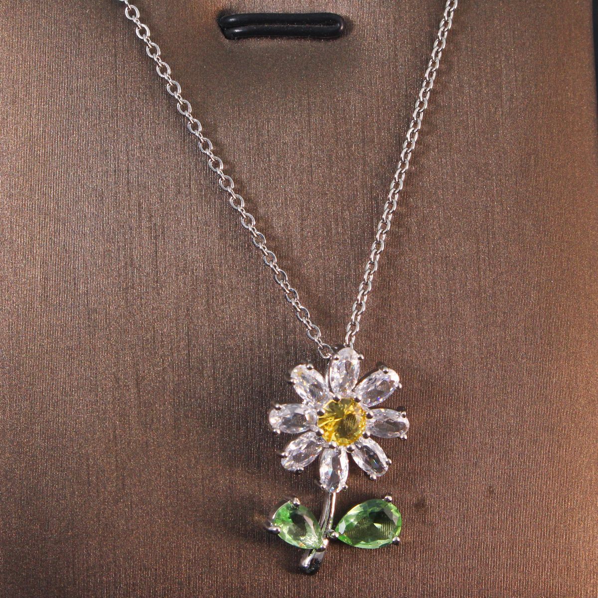 xl584 multi-petal small flower necklace silver