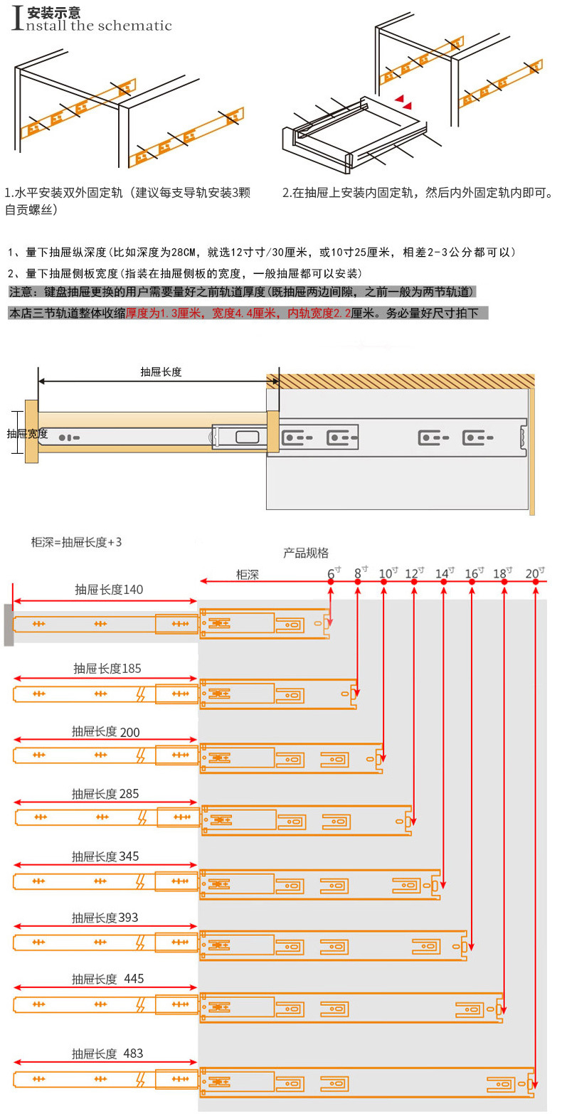 30 width three sections mute/black steel = 10 inches/220mm