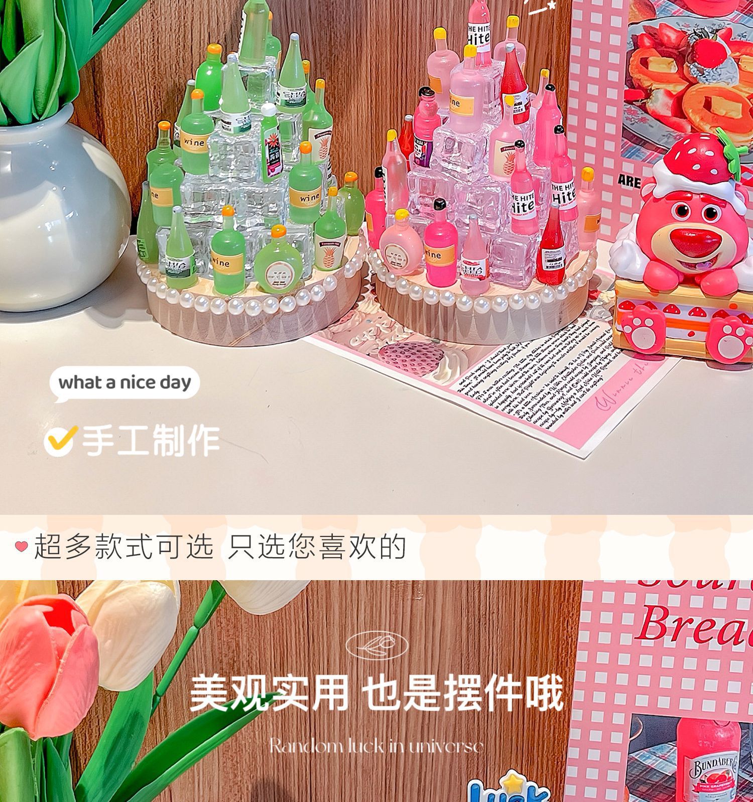 medium base + ice cube + mixed color wine bottle material package