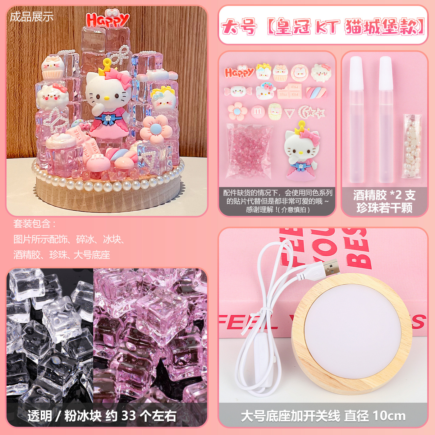 large base + ice cube + crown hello kitty castle material package