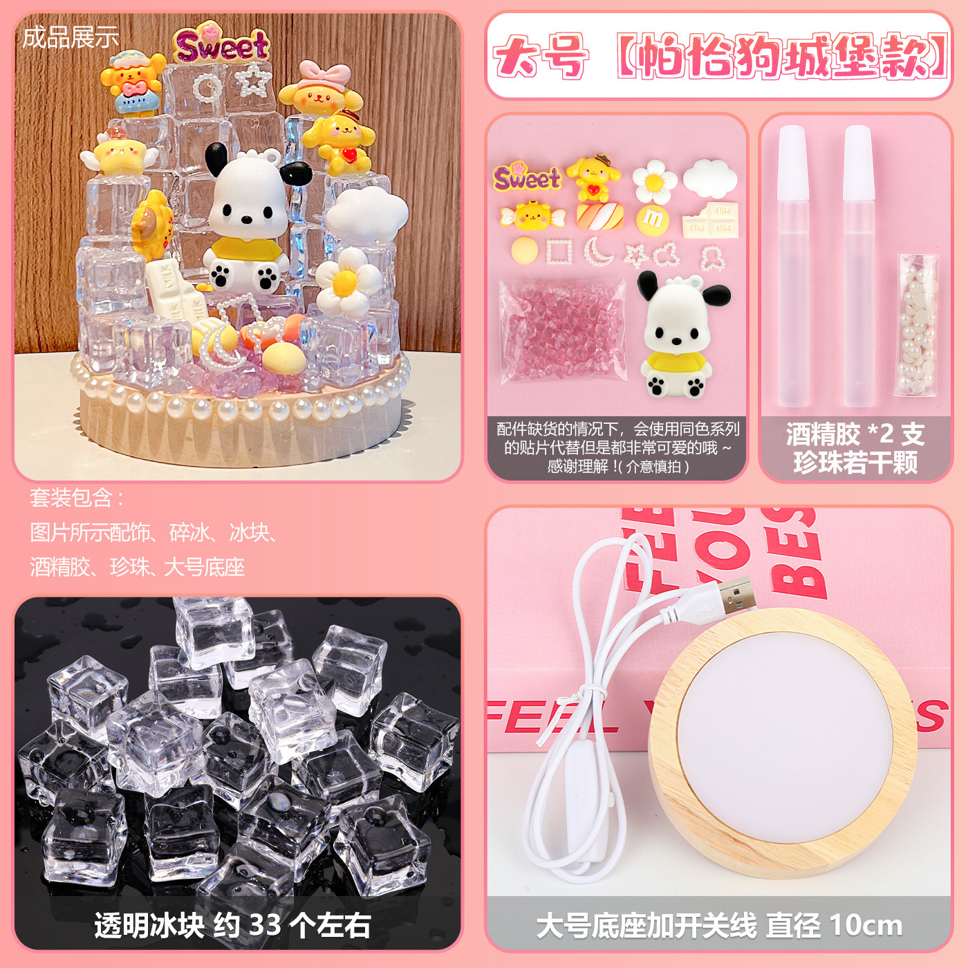 large base + ice cube + melody castle material package