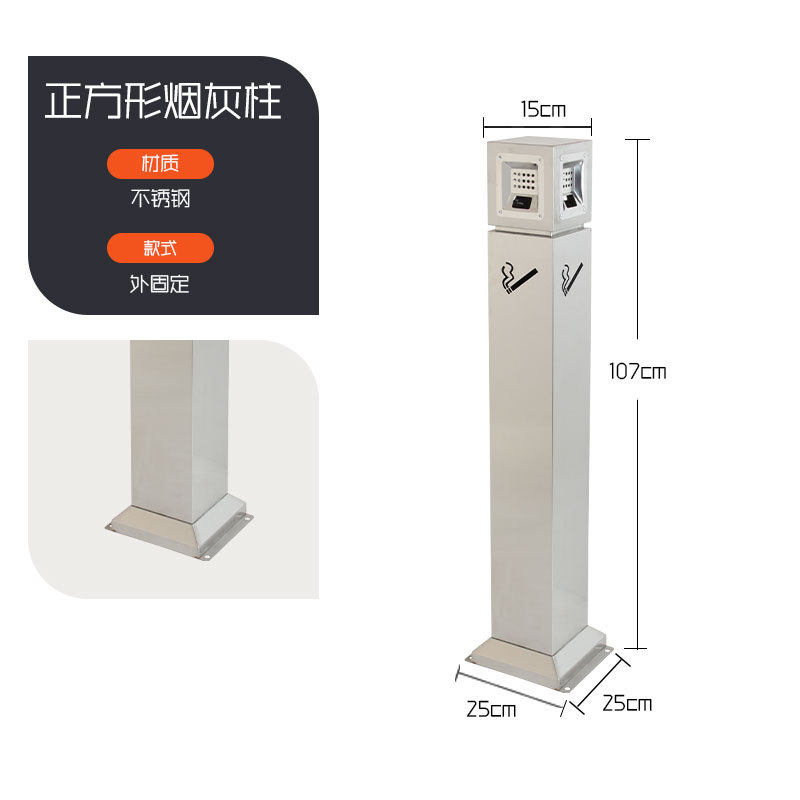 square with top ashtray-stainless steel (external fixed)