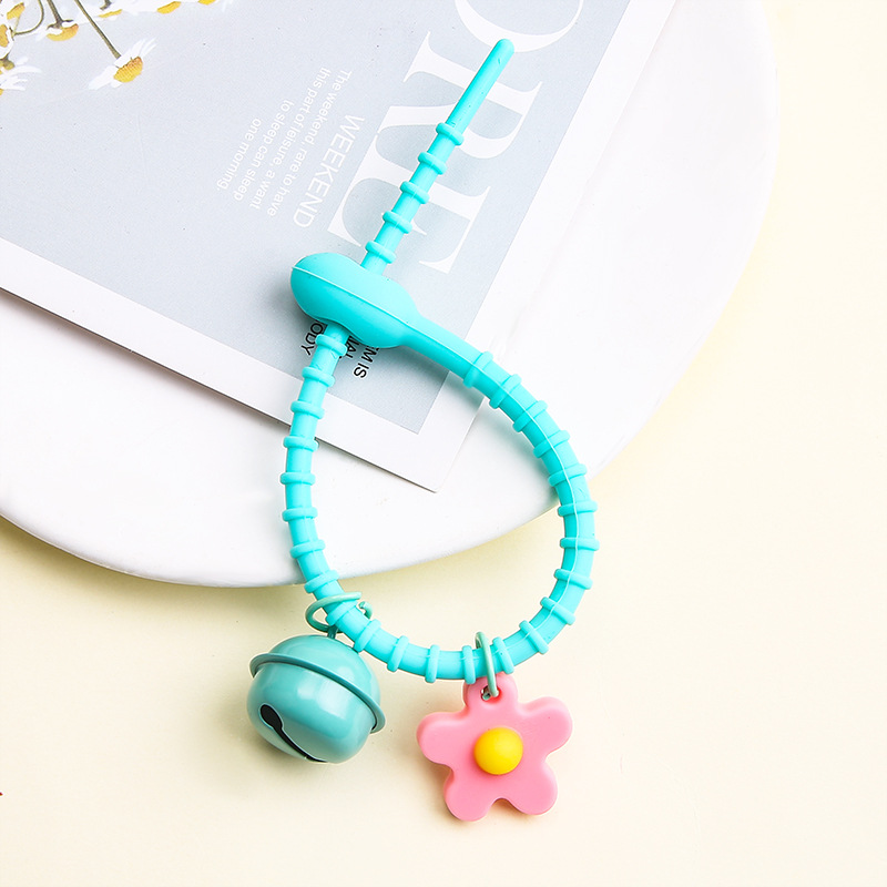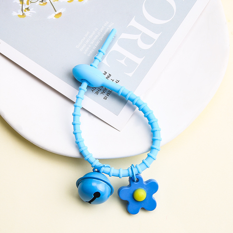 [no. 7-sky blue] tadpole silicone cable tie + flexible glue flower + 22mm bell