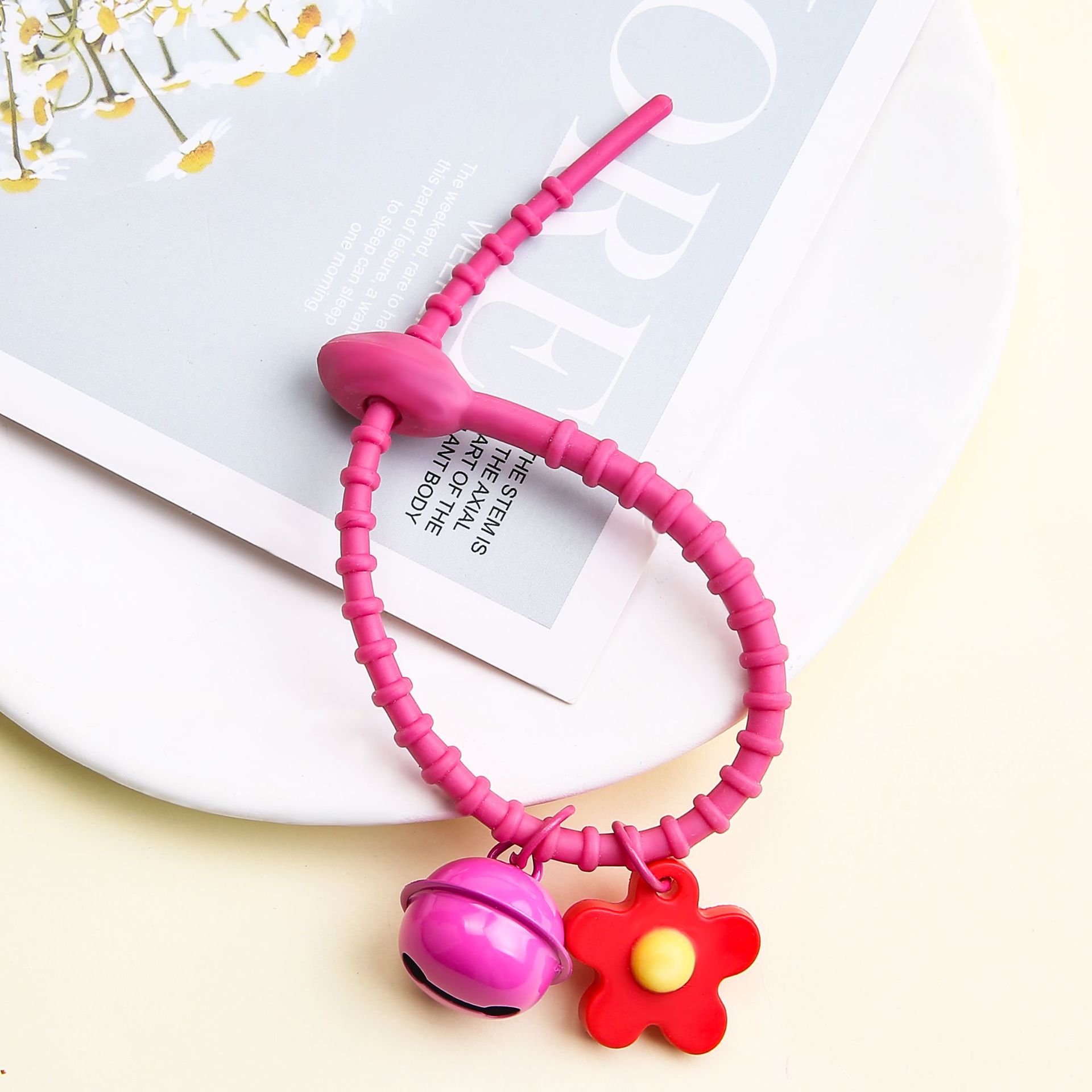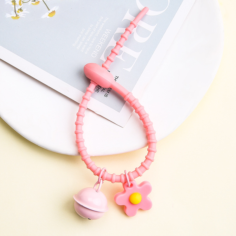 [no. 4-pink] tadpole silicone cable tie + flexible glue flower + 22mm bell
