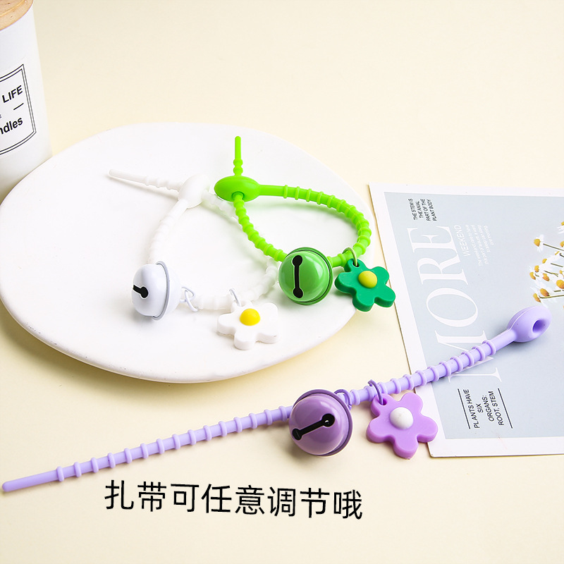 [no. 6-grass green] tadpole silicone cable tie + flexible glue flower + 22mm bell