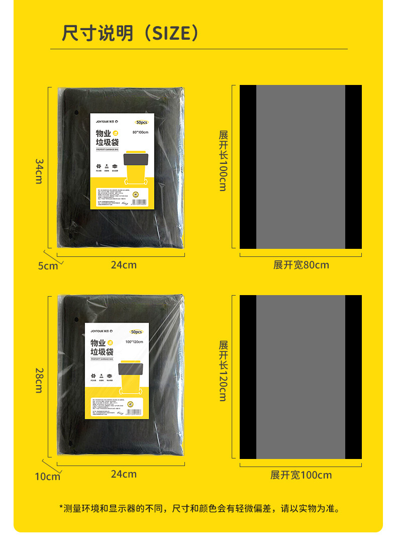 property garbage bag 80 * 100cm-thickened/flat black (50 pieces)