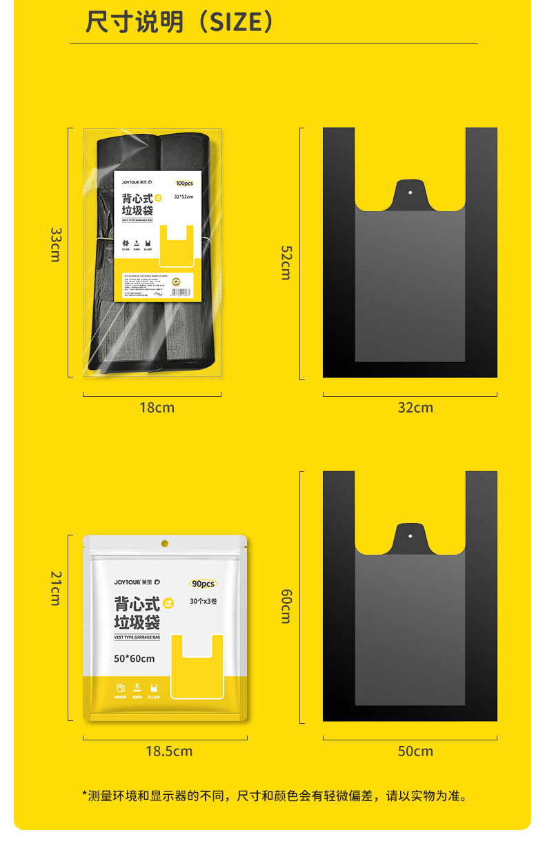 vest garbage bag 50 * 60cm-black (90 pieces)