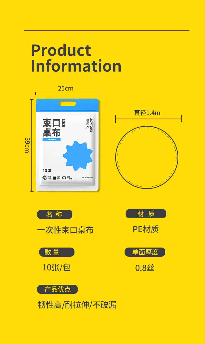 disposable drawstring tablecloth diameter 1.4m(10 sheets/bag)