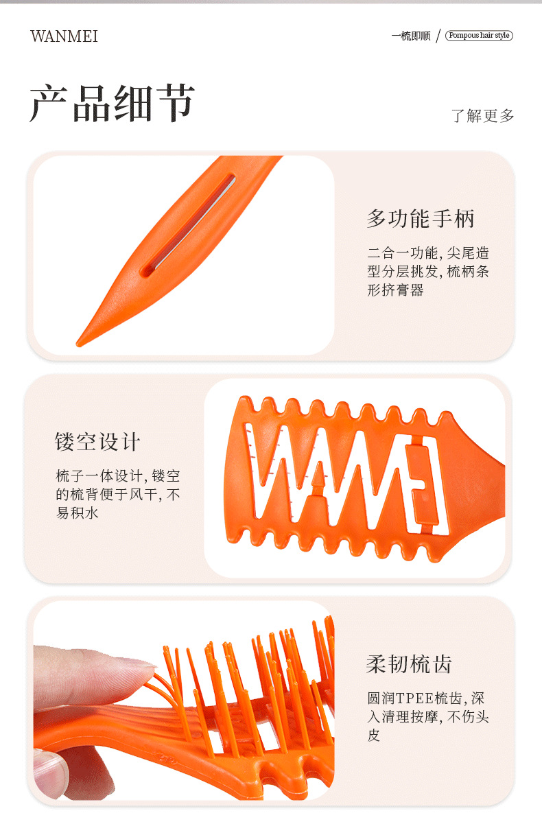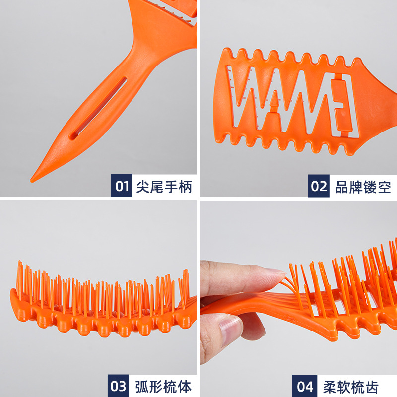wheat straw pointed tail bounce hollow comb black tooth black handle (opp bag)