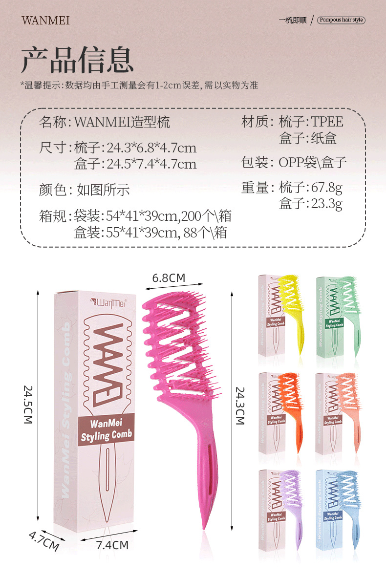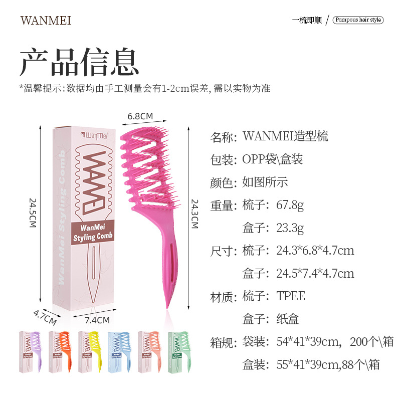 wheat straw pointed tail bounce hollow comb purple tooth purple handle (opp bag)