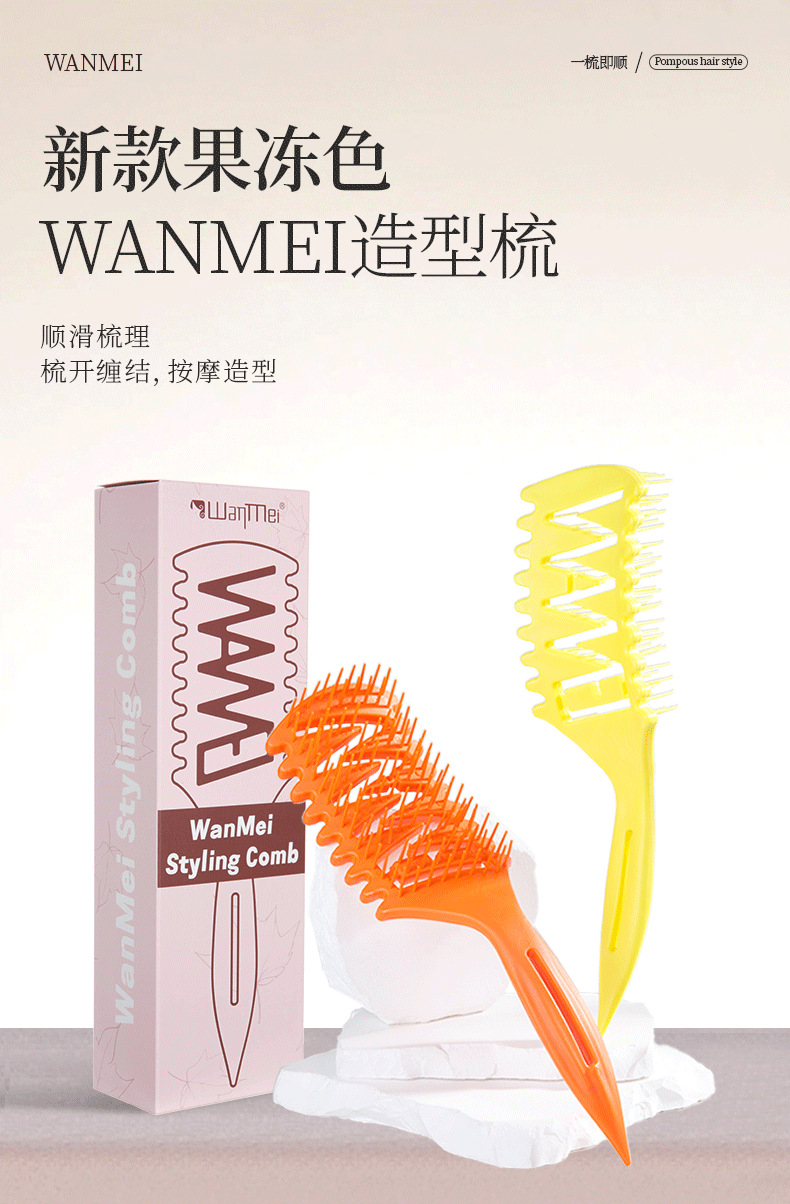 wheat straw three-fork bounce hollow comb powder handle powder teeth (opp bag)