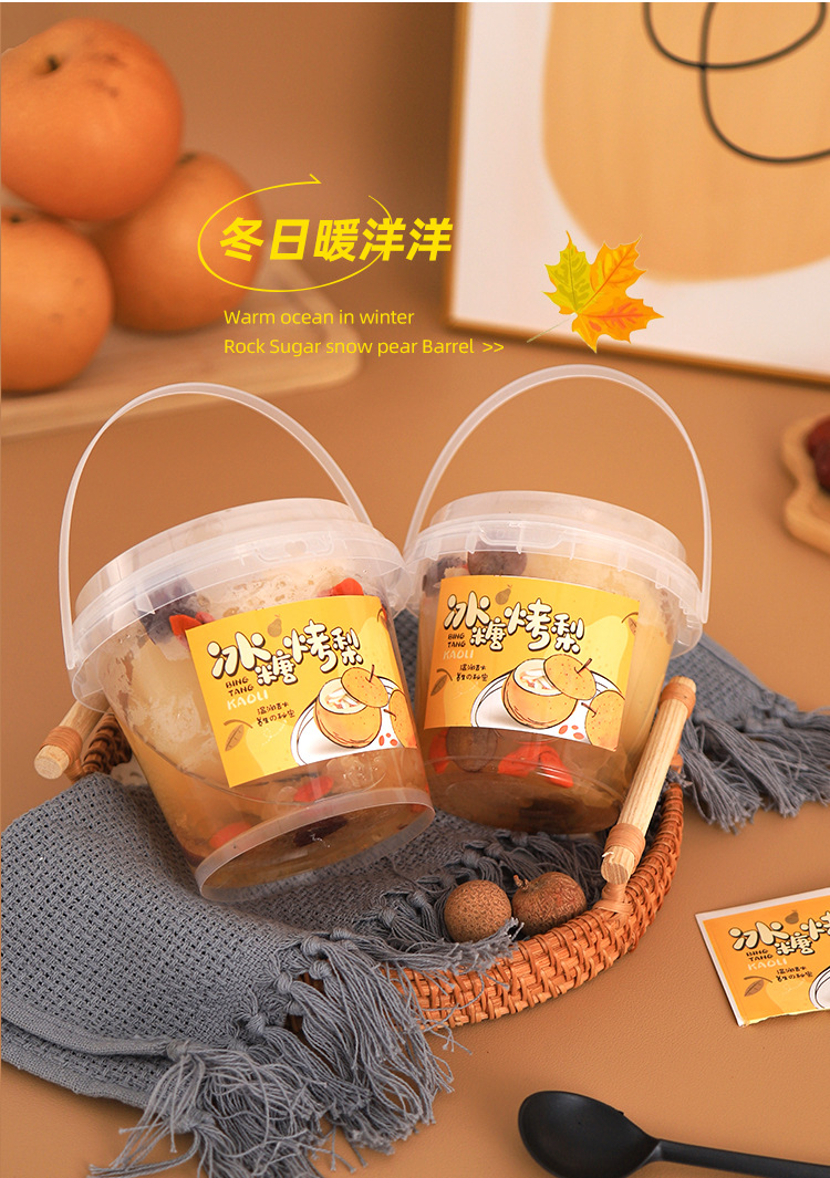 700ml carrying barrel cup + roasted pear paste + spoon (300 sets/box, the whole box can be negotiated)