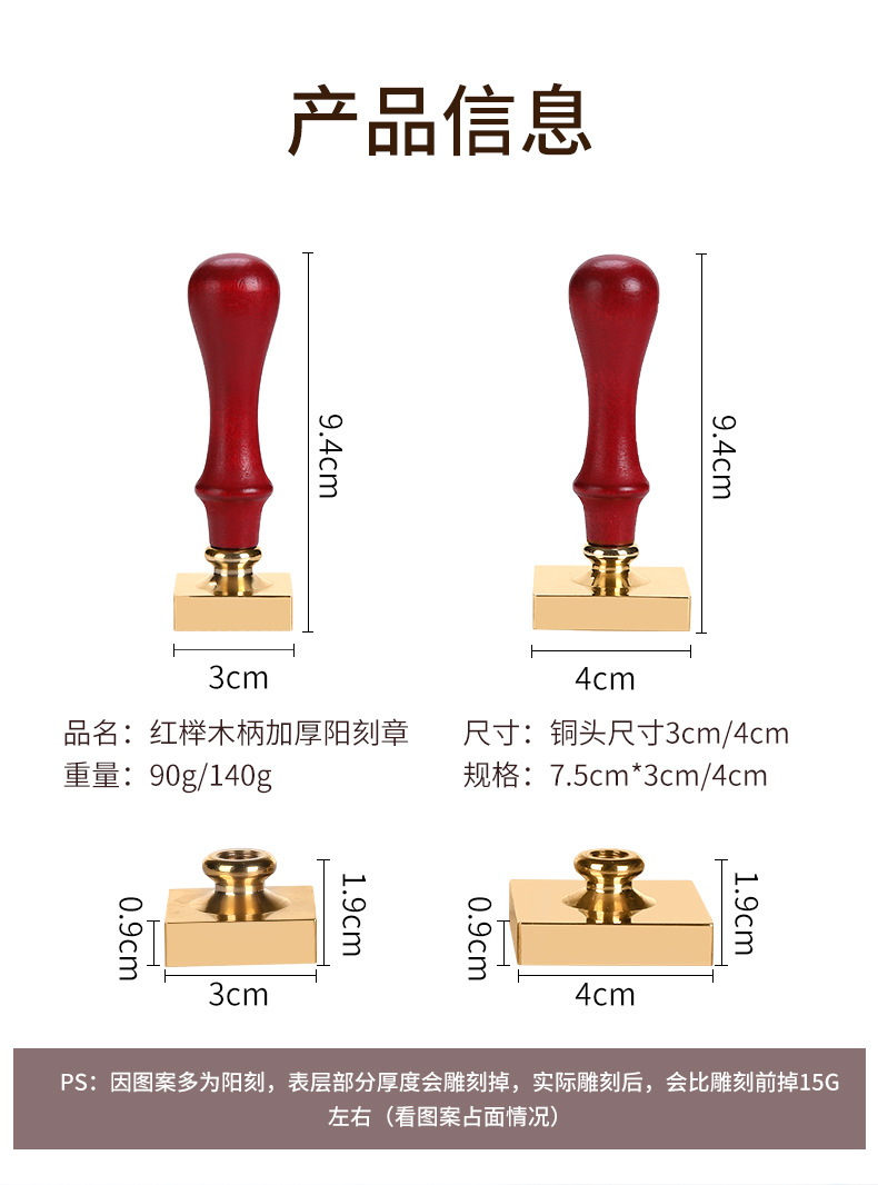 customized square 3cm (thickened yang engraving seal head + red beech handle)