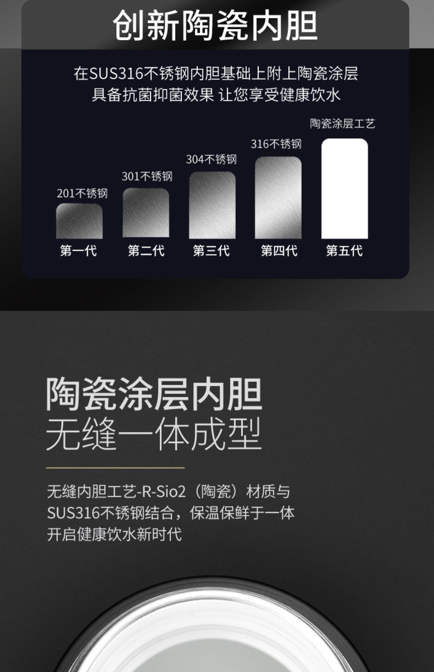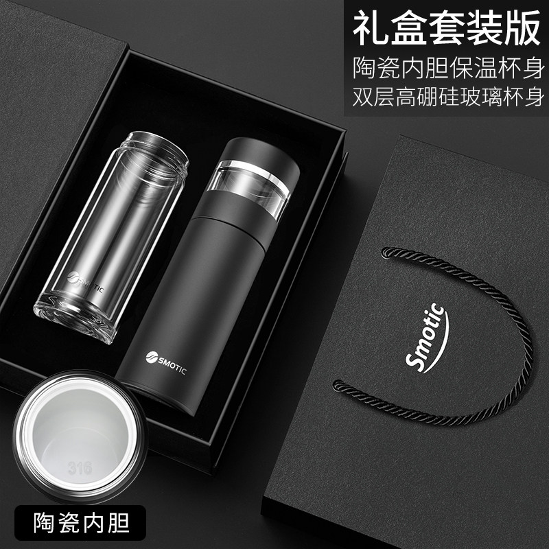 [elegant black silver-exclusive suit] ceramic inner pot thermos cup + double layer glass cup