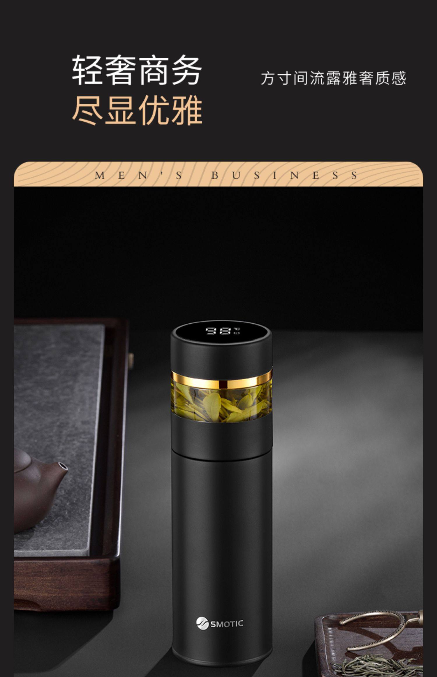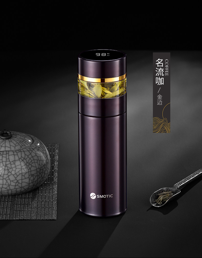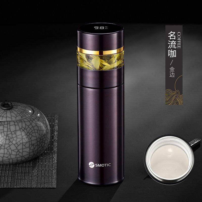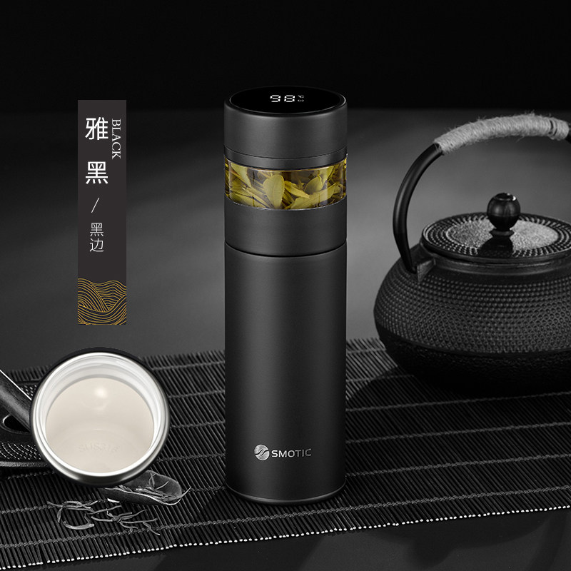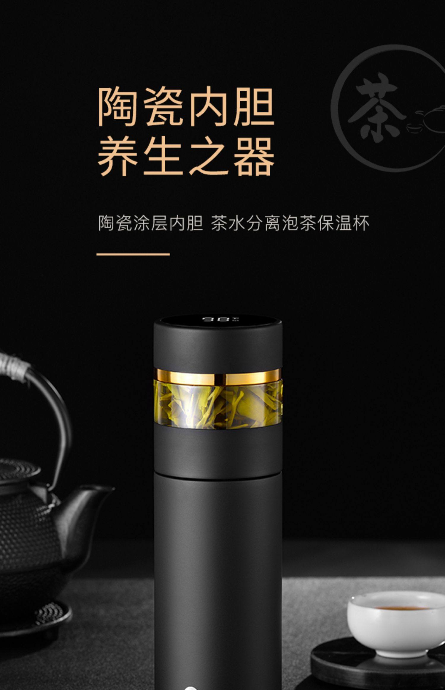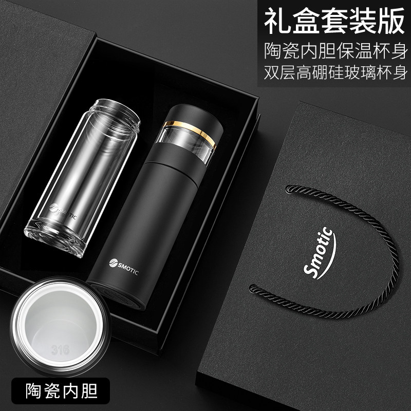 [elegant black gold-exclusive suit] ceramic inner pot thermos cup + double layer glass cup