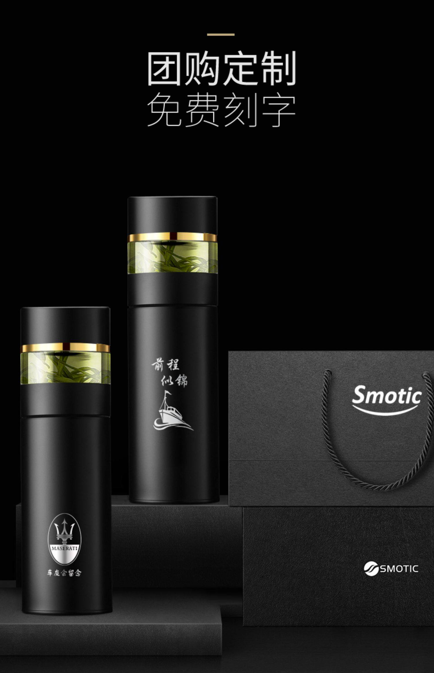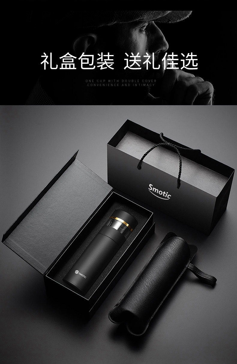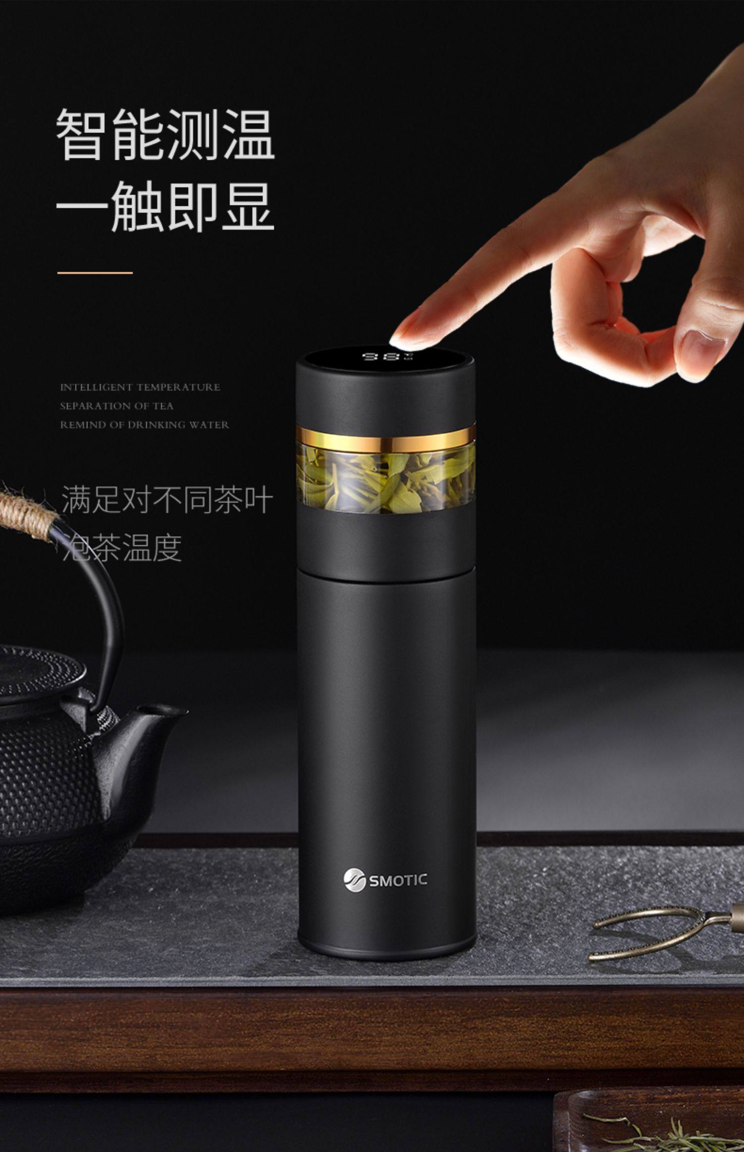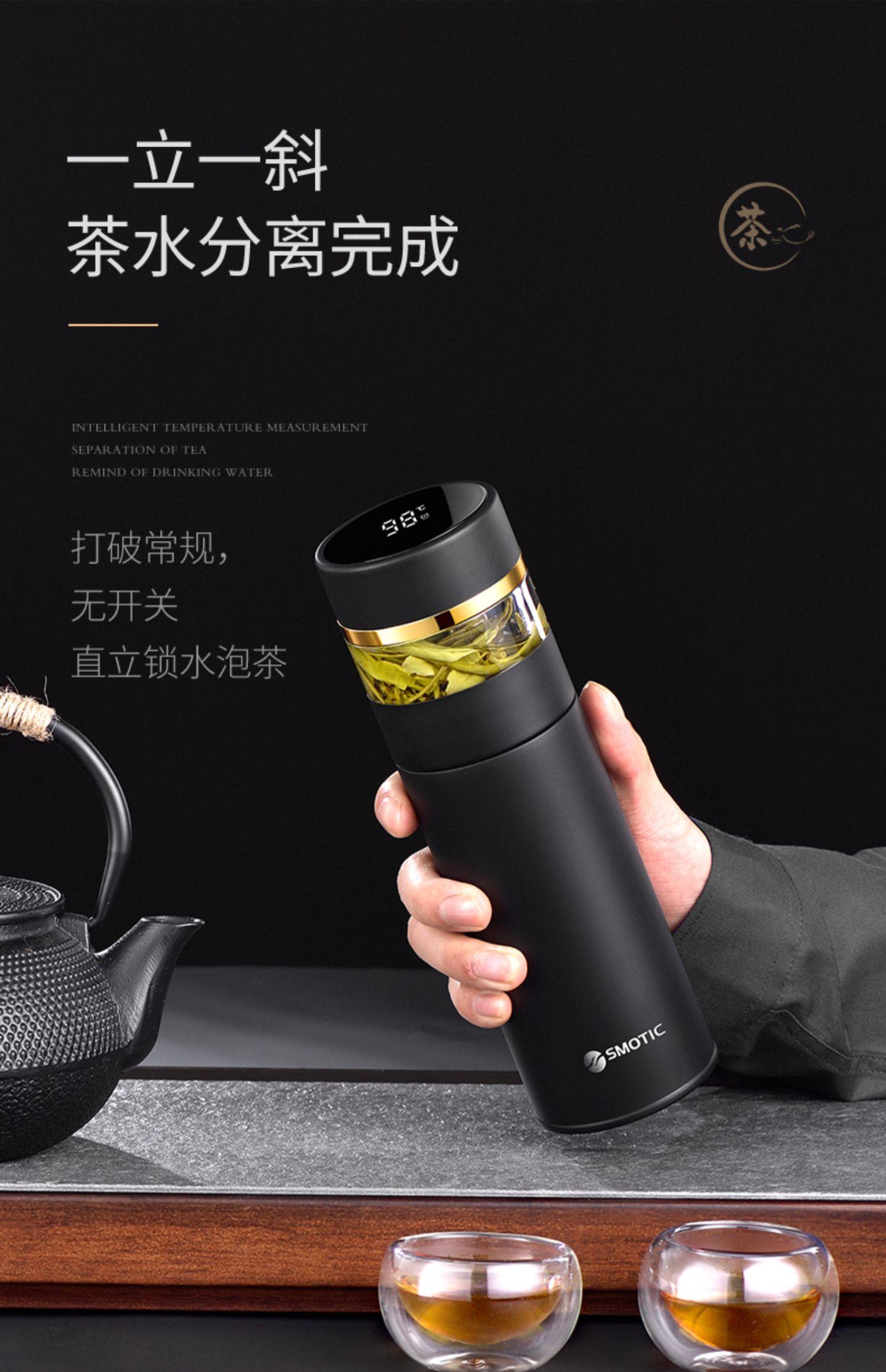 [elegant black gold-exclusive suit] ceramic inner pot thermos cup + double layer glass cup
