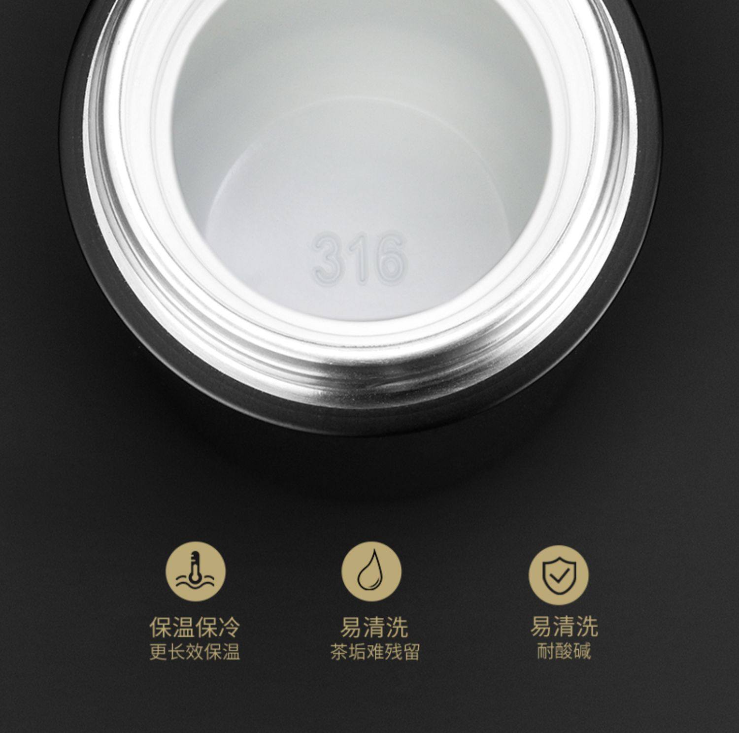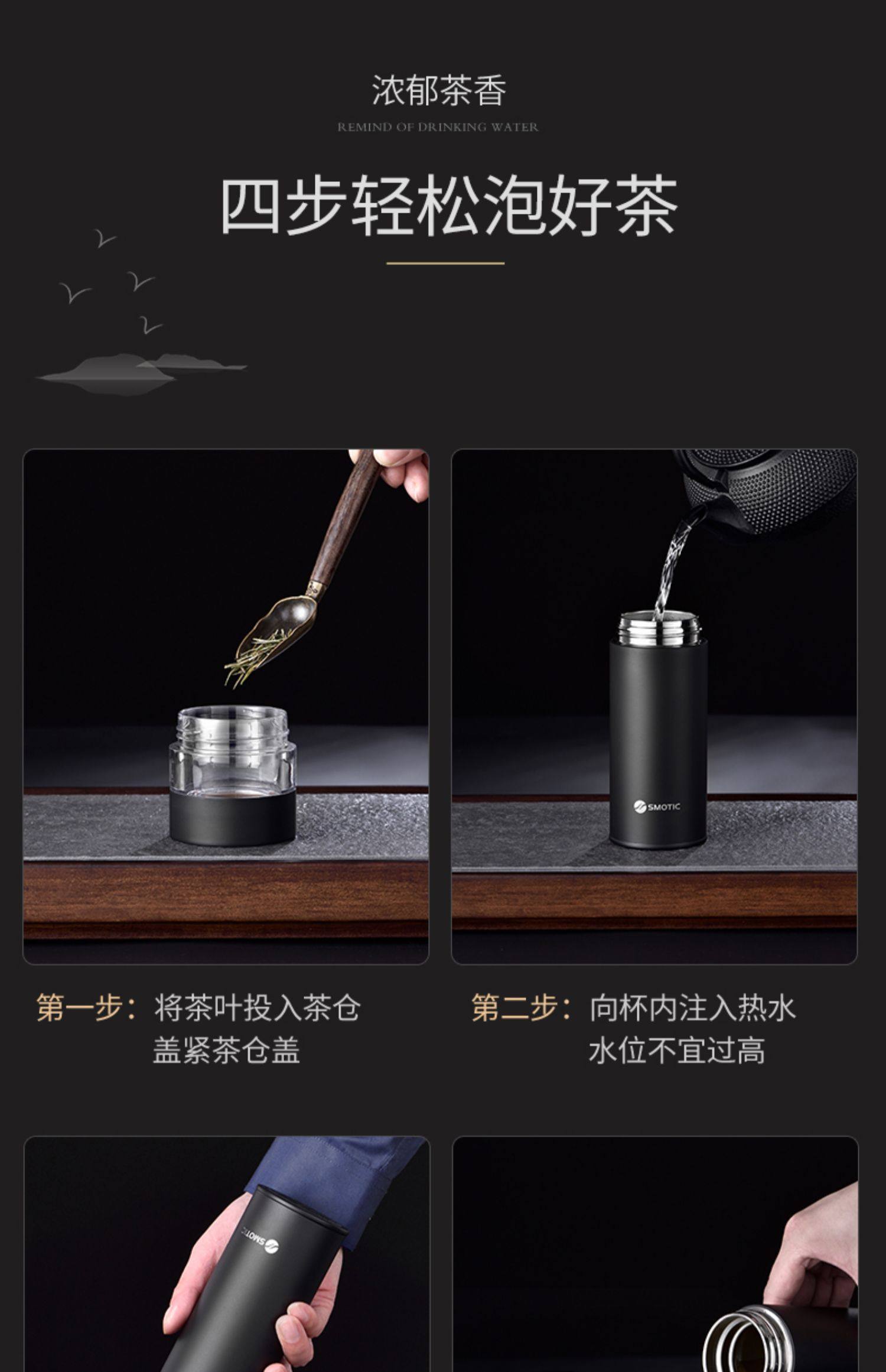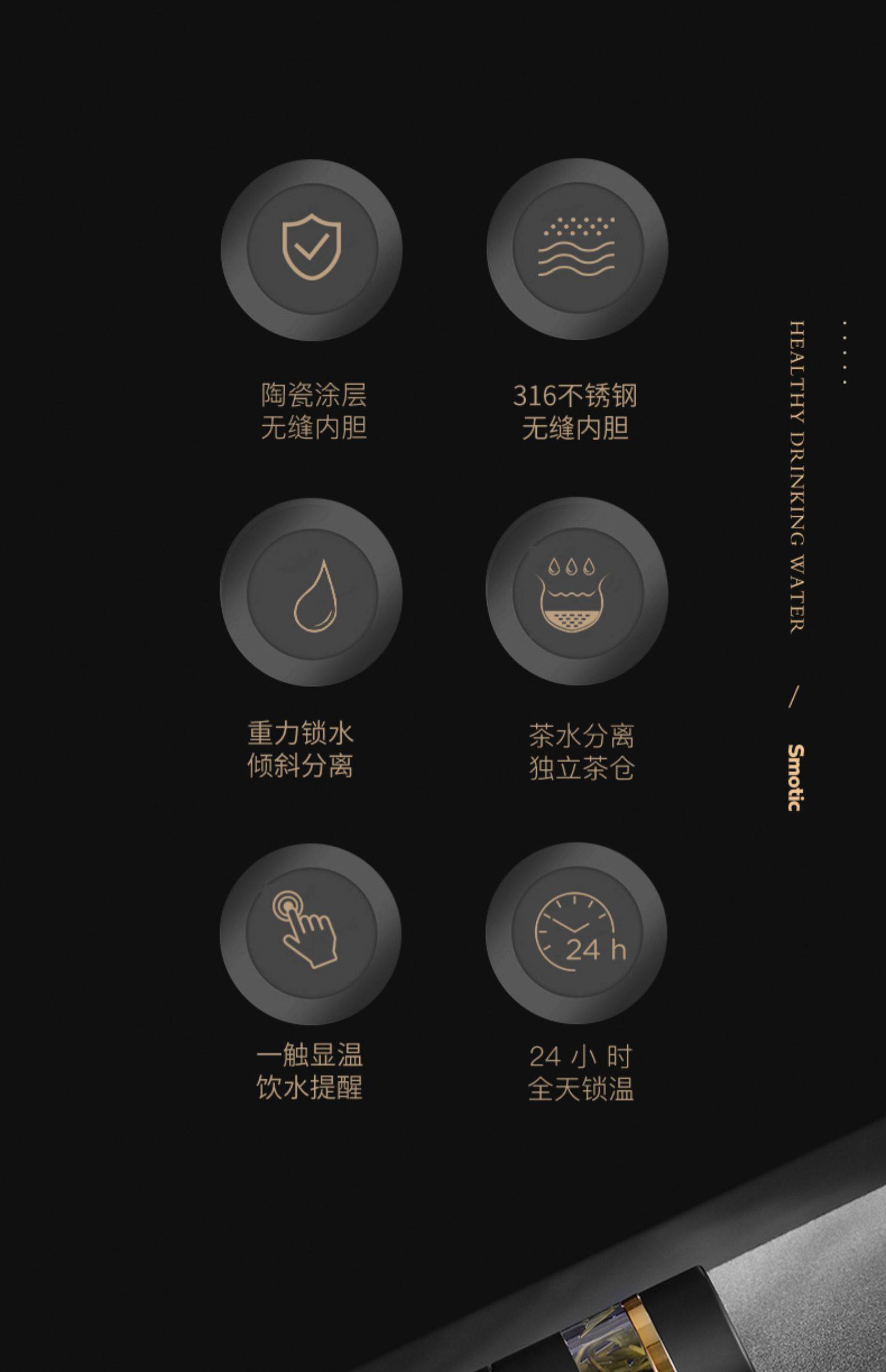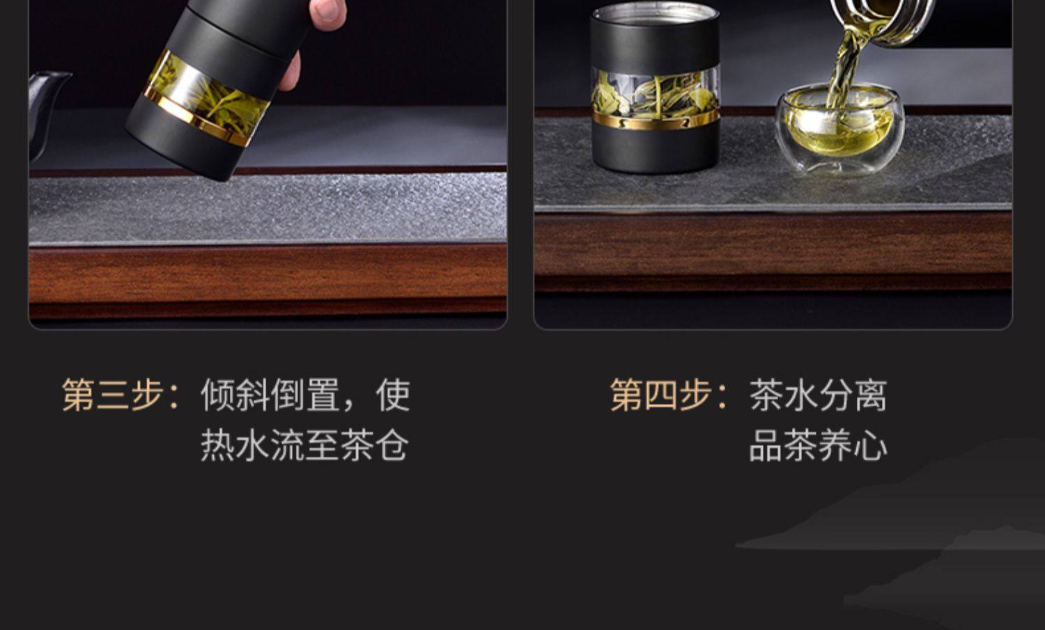 [elegant black gold-exclusive suit] ceramic inner pot thermos cup + double layer glass cup