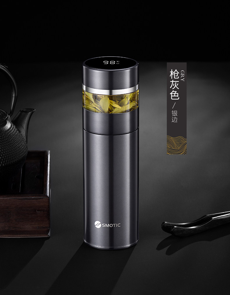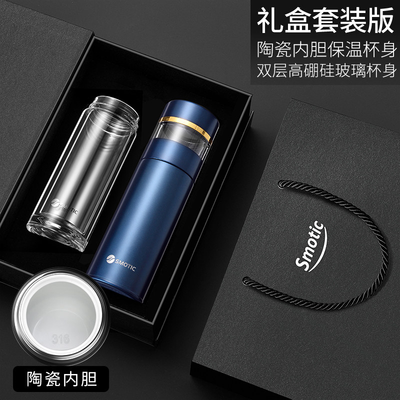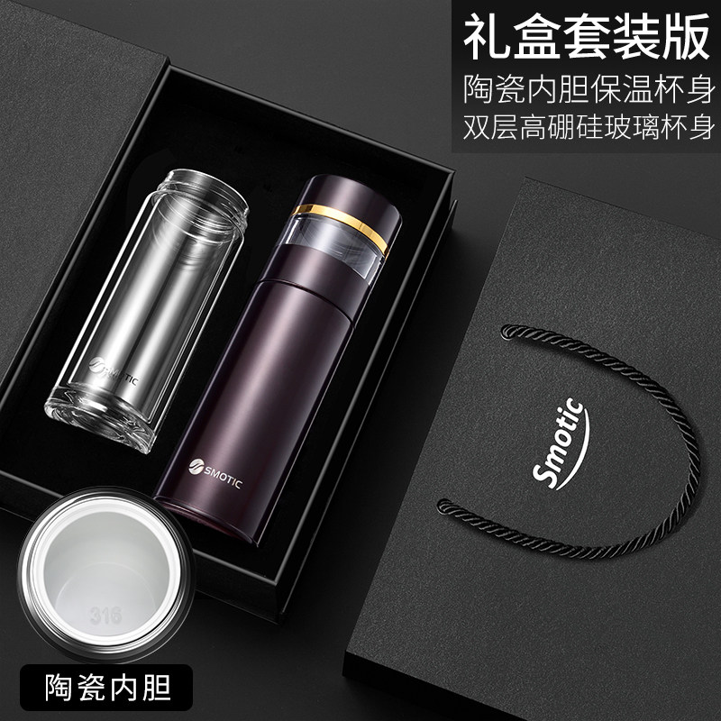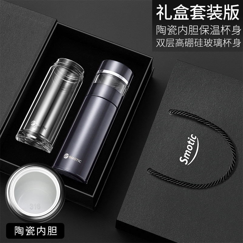 [gun gray-enjoy suit] ceramic inner pot thermos cup + double layer glass cup