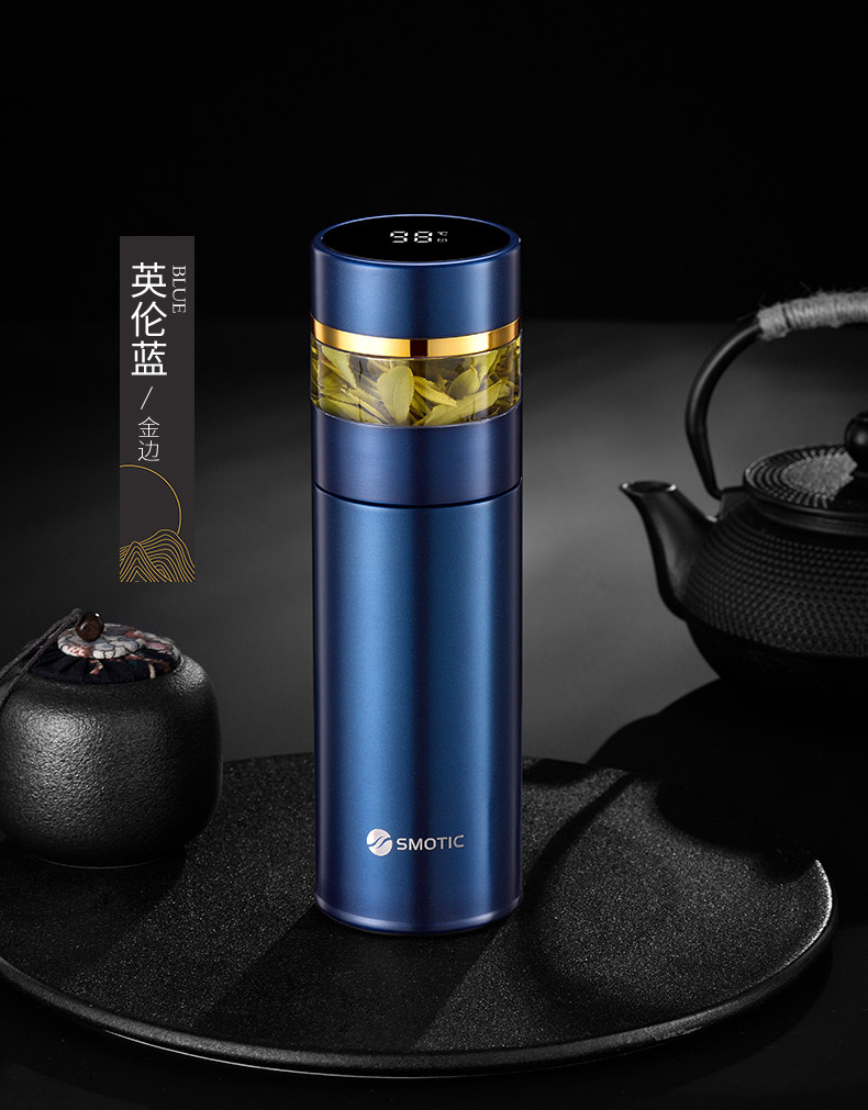 [british blue-enjoy suit] ceramic inner pot thermos cup + double layer glass cup