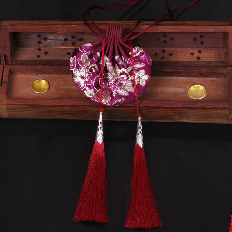 wine red dragon pattern (2 tassels) bag